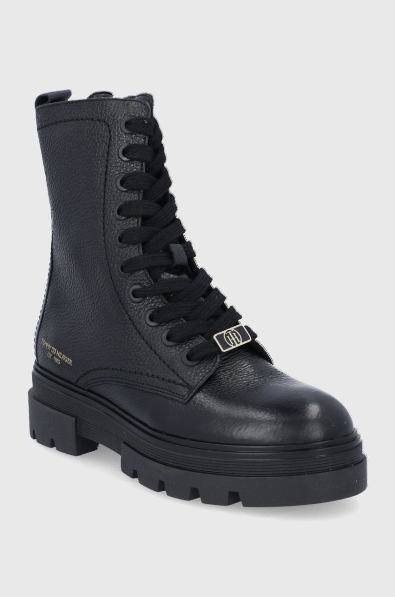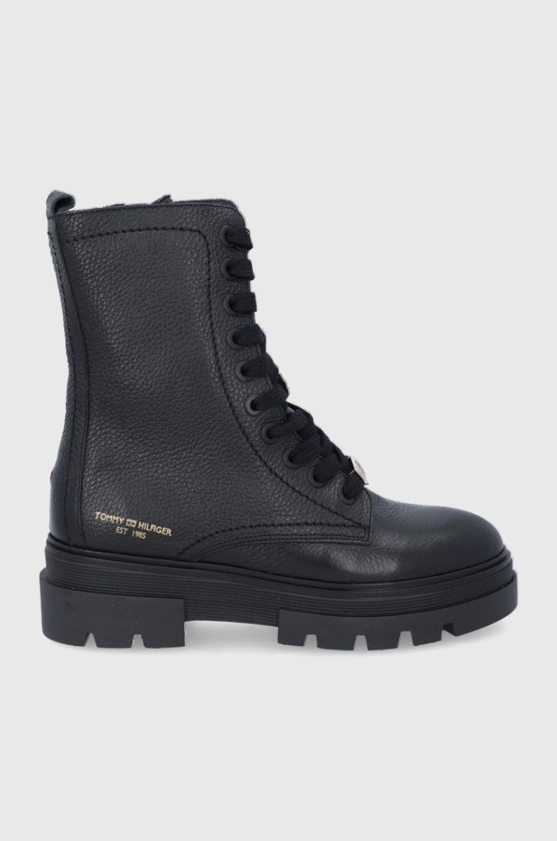 Шкіряні черевики Tommy Hilfiger жіночі колір чорний на платформі злегка утеплена