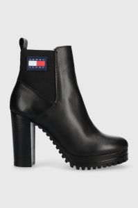 Шкіряні черевики Tommy Jeans TJW NEW ESS HIGH HEEL BOOT жіночі колір чорний на плоскому ходу EN0EN02439