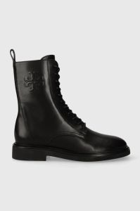 Шкіряні черевики Tory Burch DOUBLE T COMBAT BOOT жіночі колір чорний на плоскому ходу 154336-006