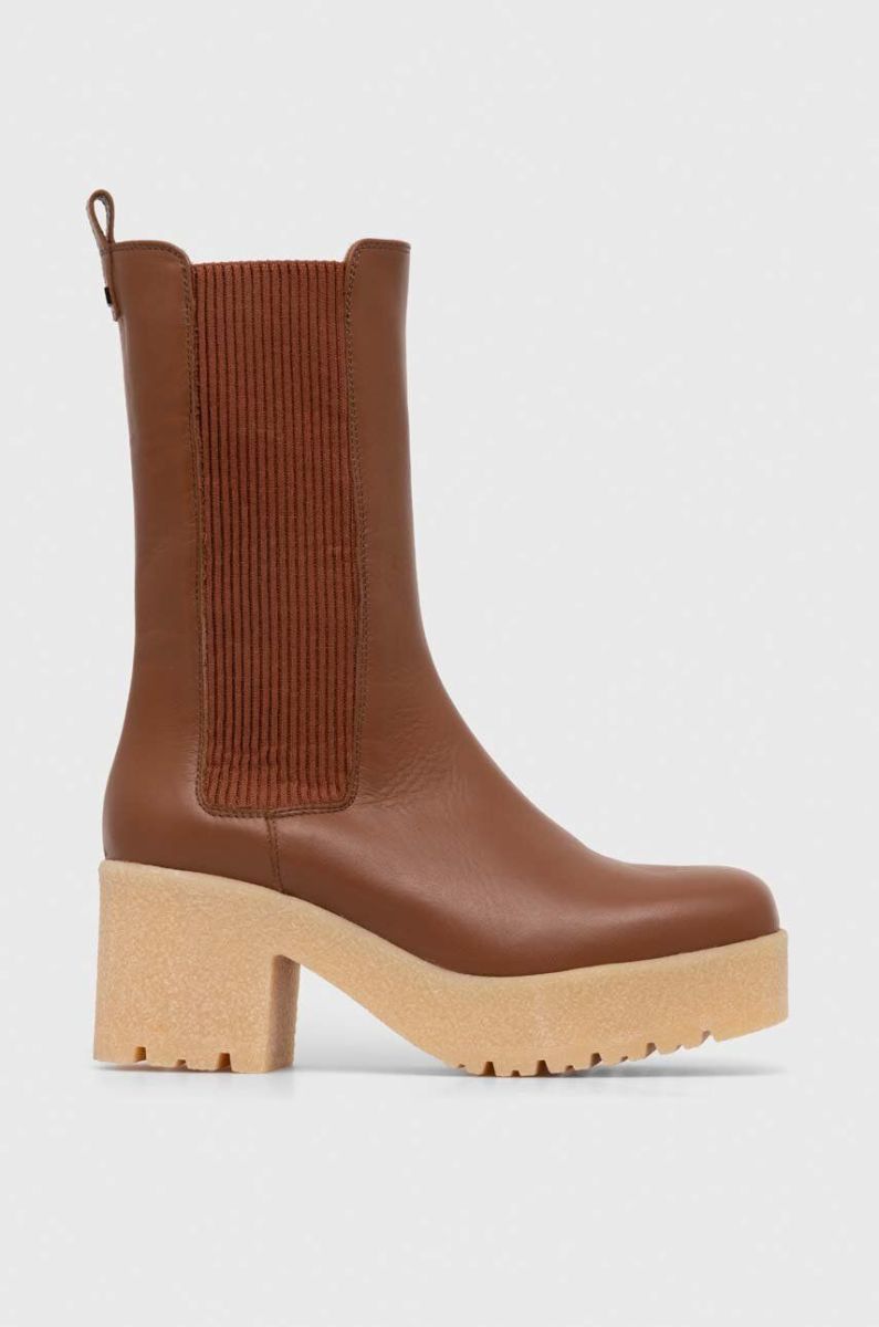 Шкіряні черевики Weekend Max Mara Guglia жіночі колір коричневий каблук блок 2357960734600