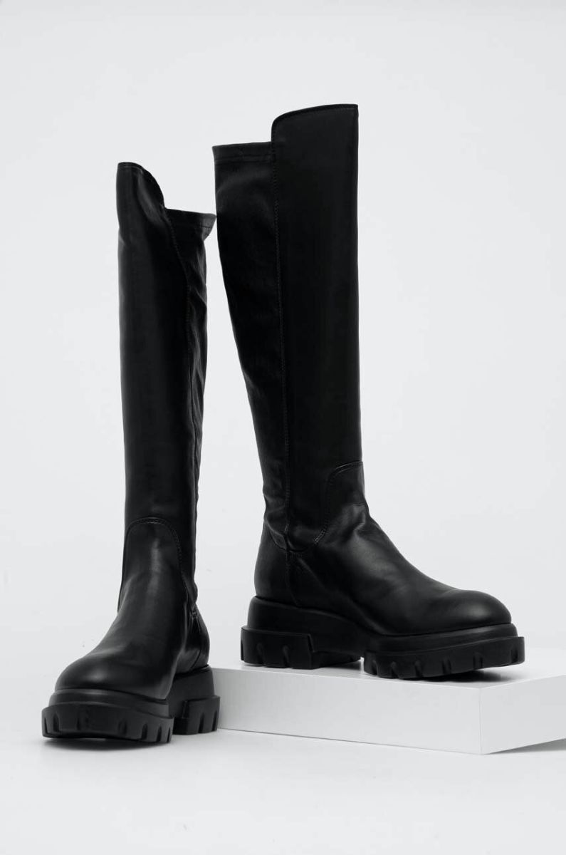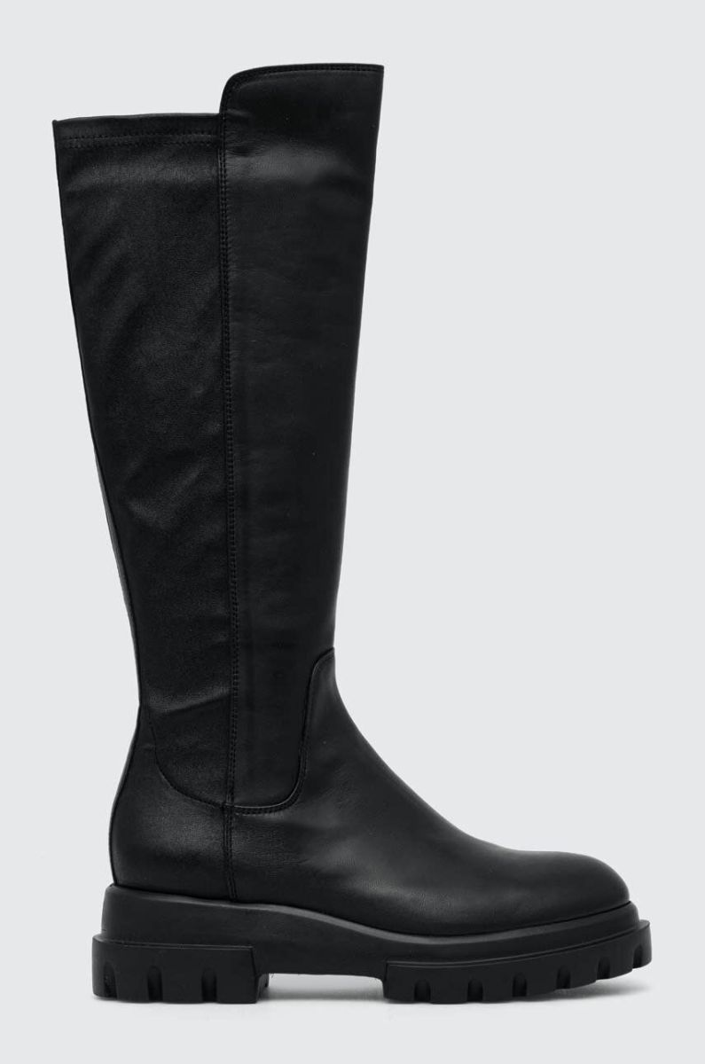 Шкіряні чоботи AGL MALIKA жіночі колір чорний на плоскому ходу D756564PGKA1121049