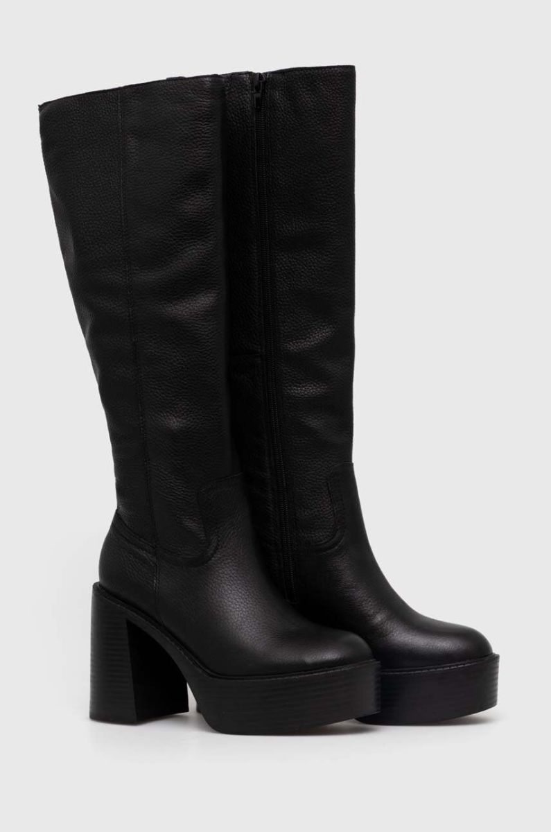 Шкіряні чоботи Aldo Rykiel жіночі колір чорний каблук блок 13621050Rykiel