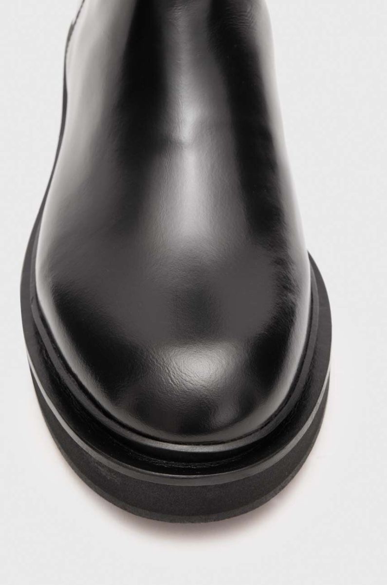 Шкіряні чоботи AllSaints MILO жіночі колір чорний на плоскому ходу WF587X