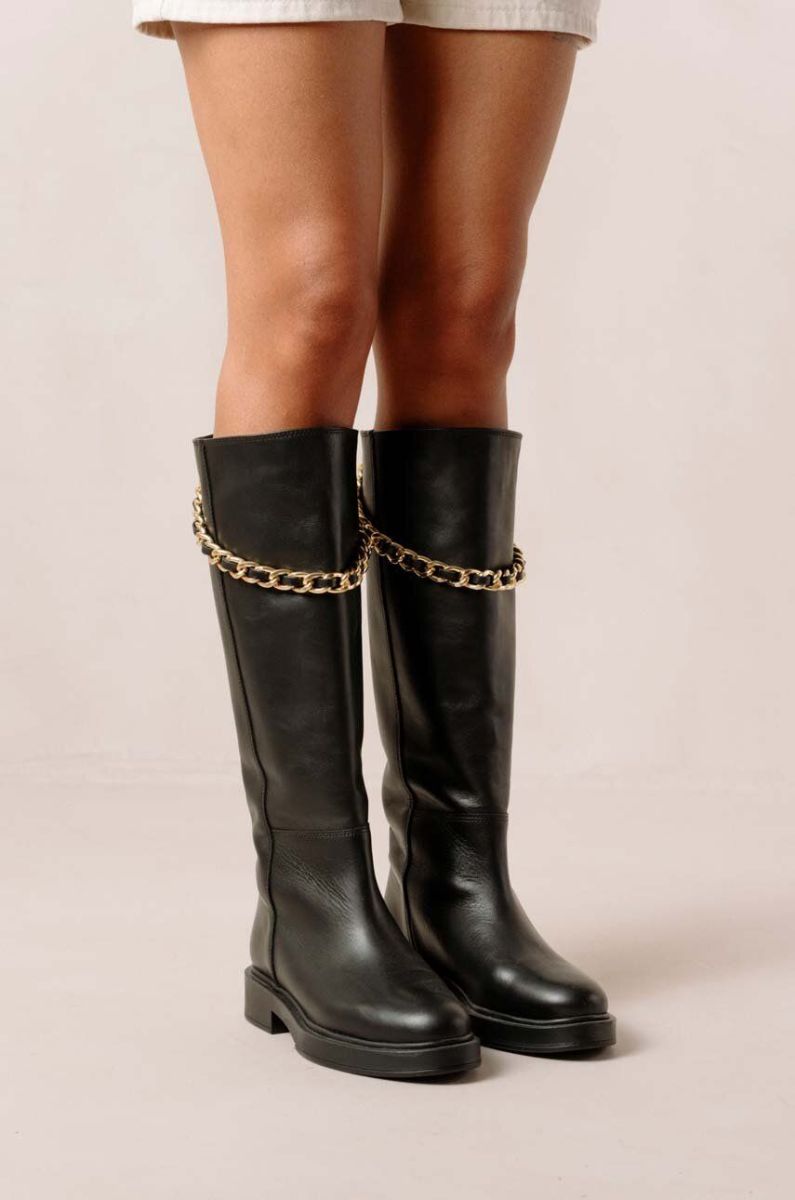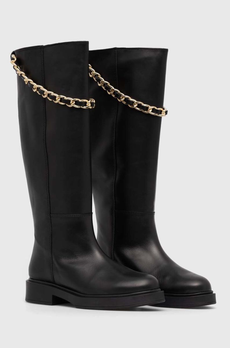 Шкіряні чоботи Alohas Pier жіночі колір чорний на плоскому ходу S00326.253