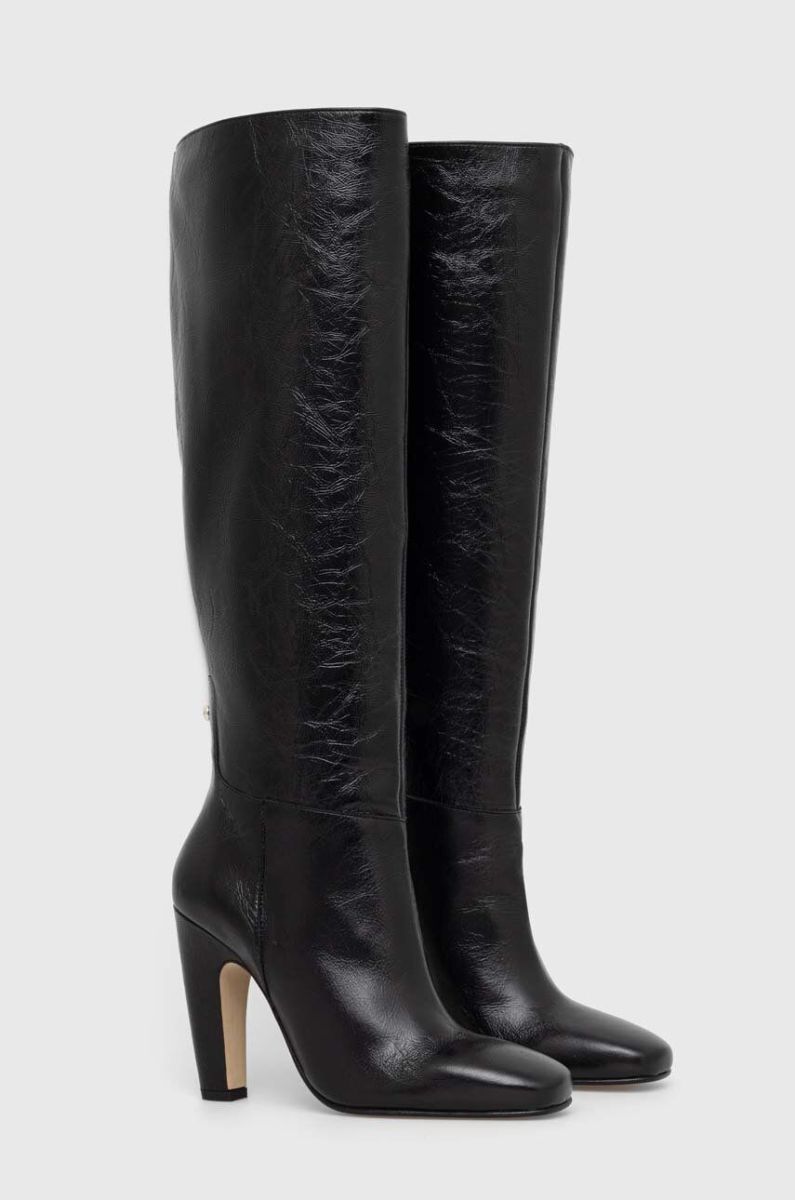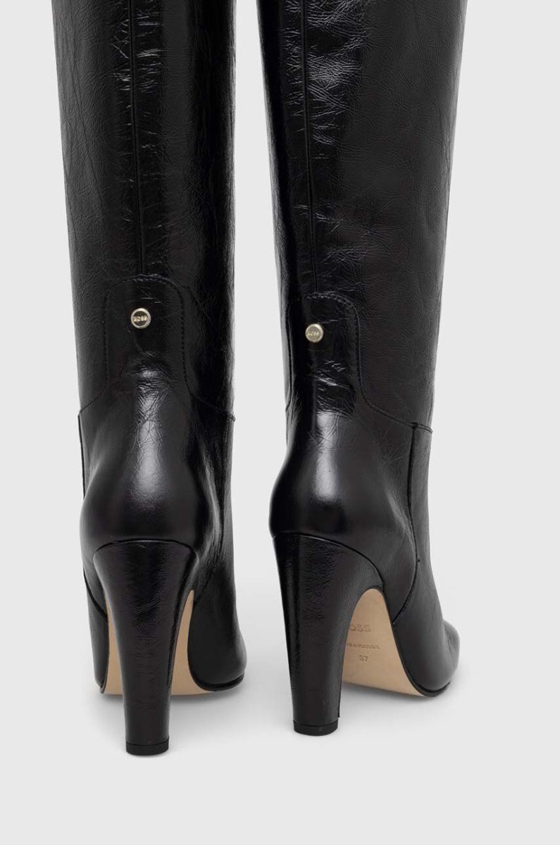 Шкіряні чоботи BOSS Aleya жіночі колір чорний каблук блок 50504504