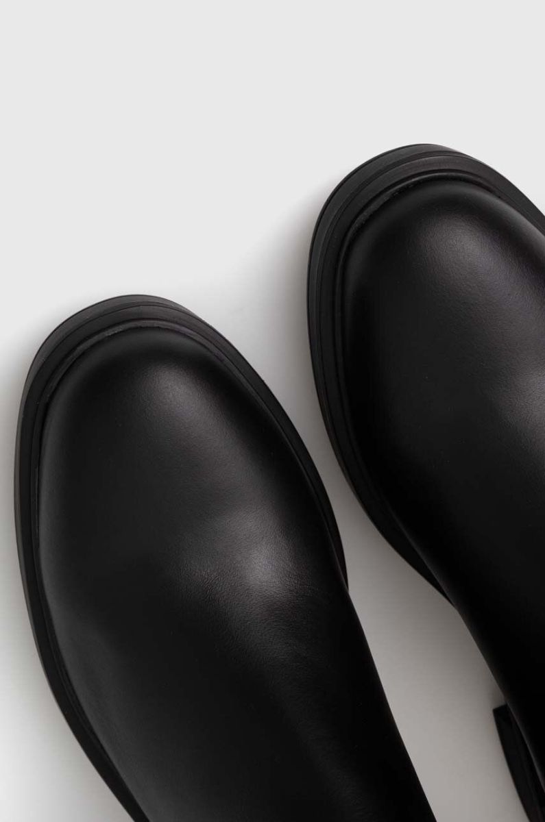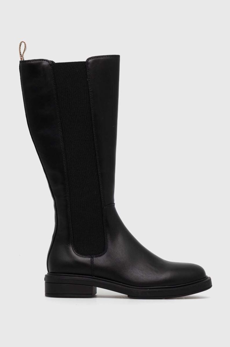 Шкіряні чоботи BOSS Vanity жіночі колір чорний на плоскому ходу 50498843