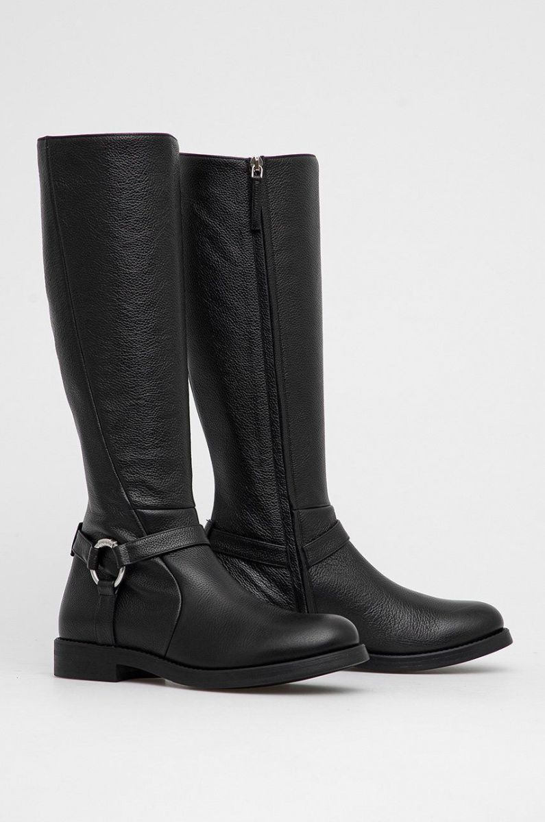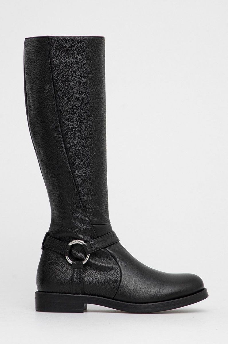 Шкіряні чоботи Hugo жіночі колір чорний на плоскому ходу