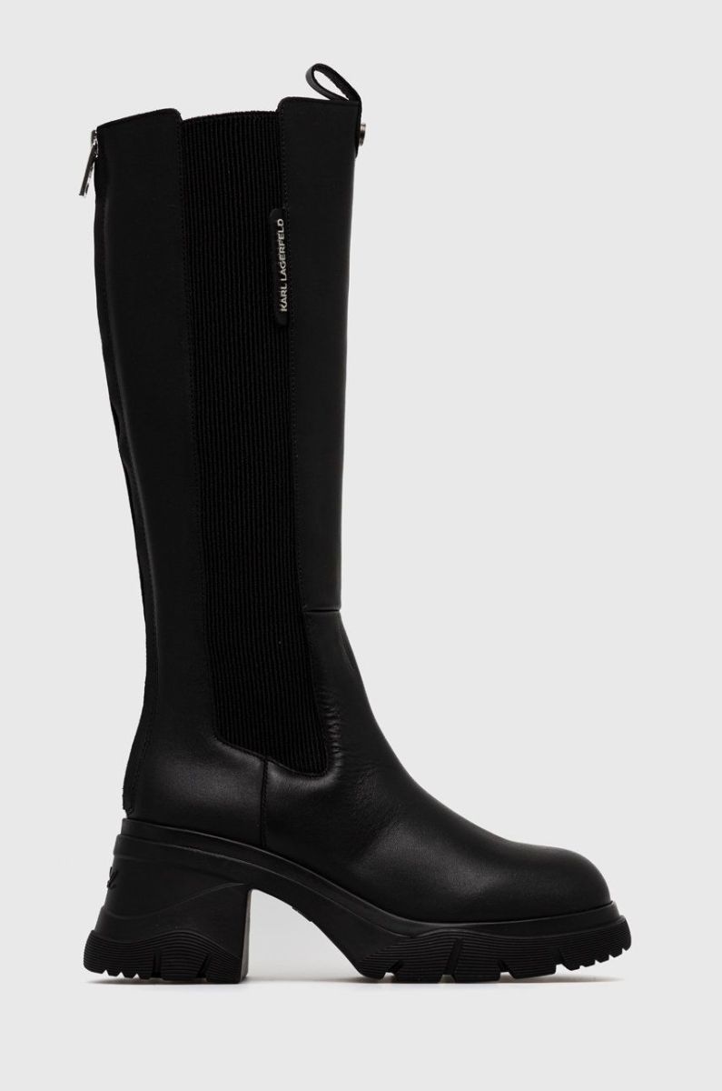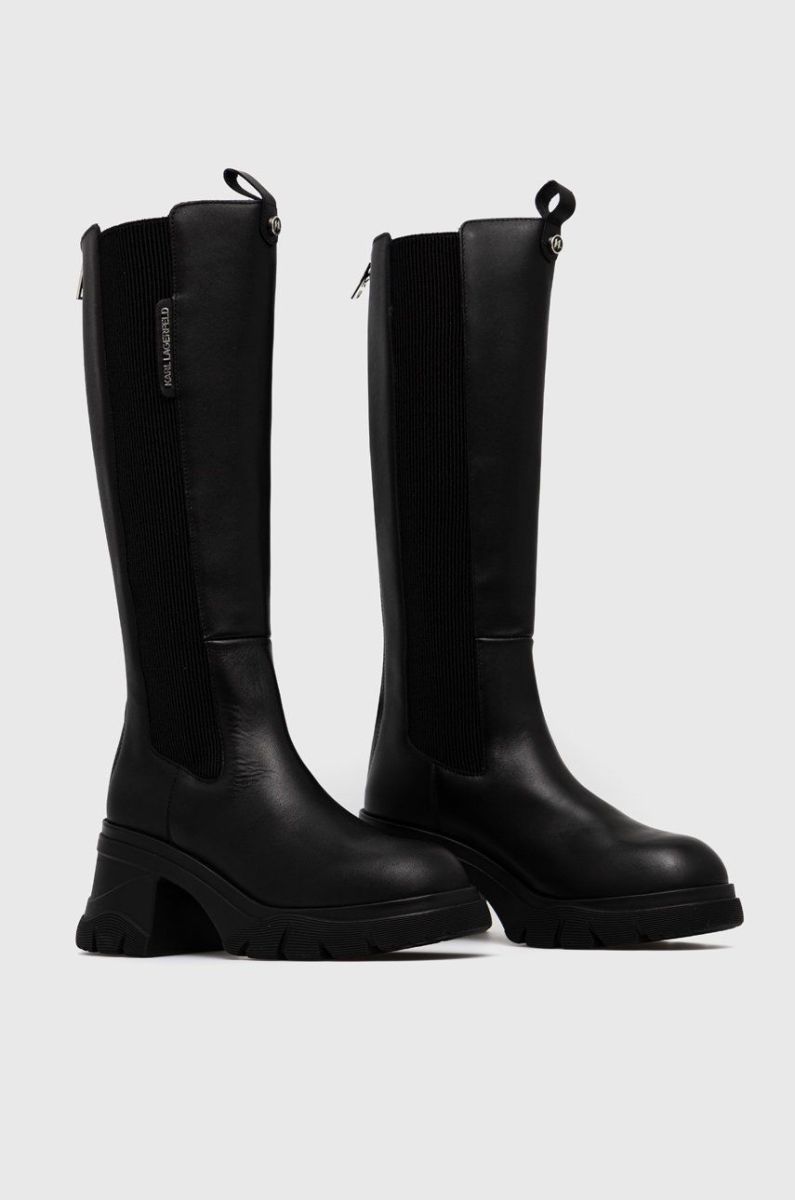 Шкіряні чоботи Karl Lagerfeld Bridger жіночі колір чорний каблук блок