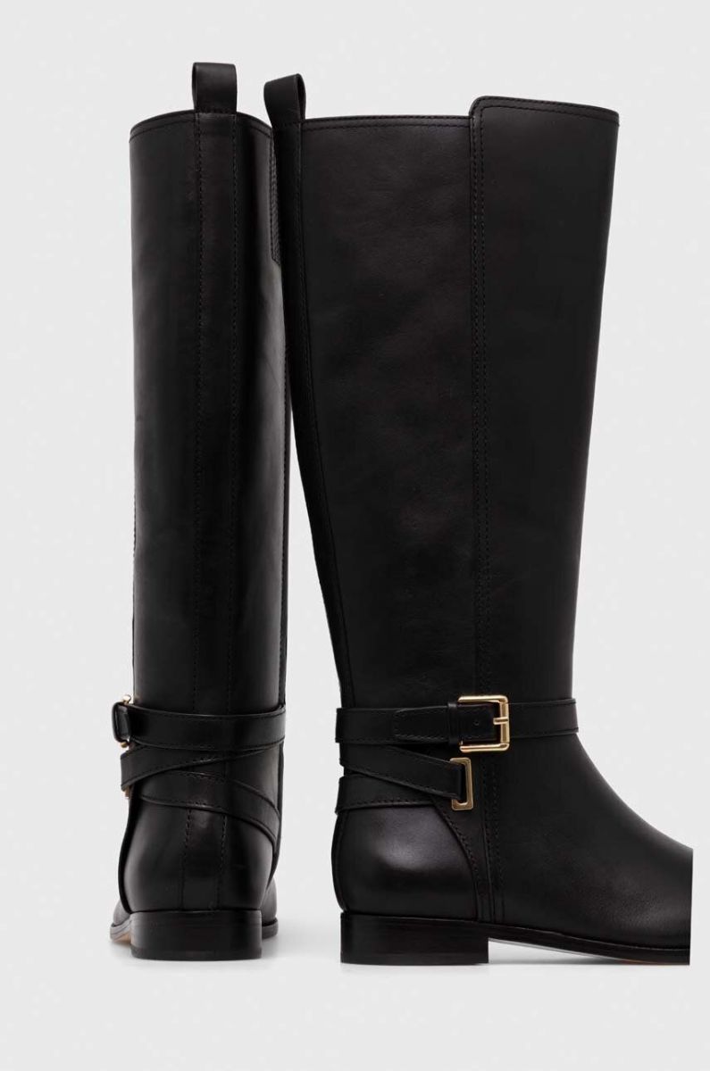 Шкіряні чоботи Lauren Ralph Lauren Blayke жіночі колір чорний на плоскому ходу 802912396001