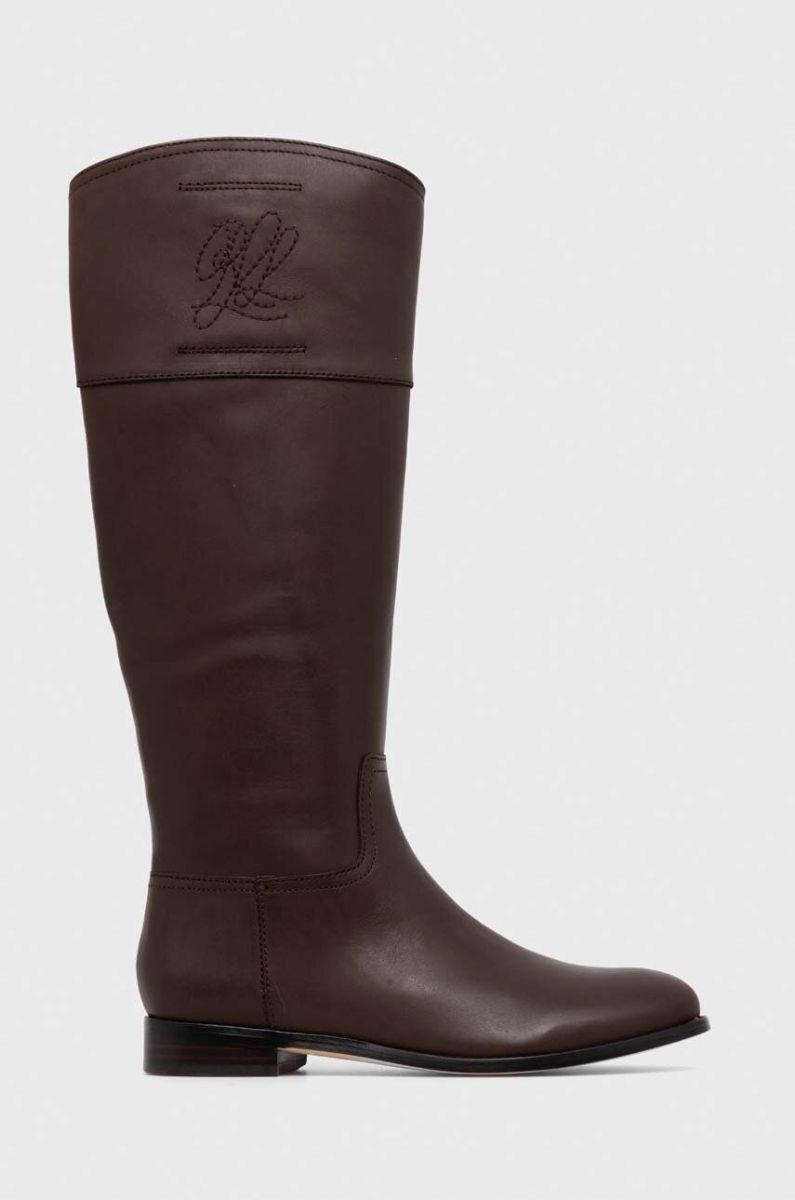 Шкіряні чоботи Lauren Ralph Lauren Justine жіночі колір коричневий на плоскому ходу 802915418003
