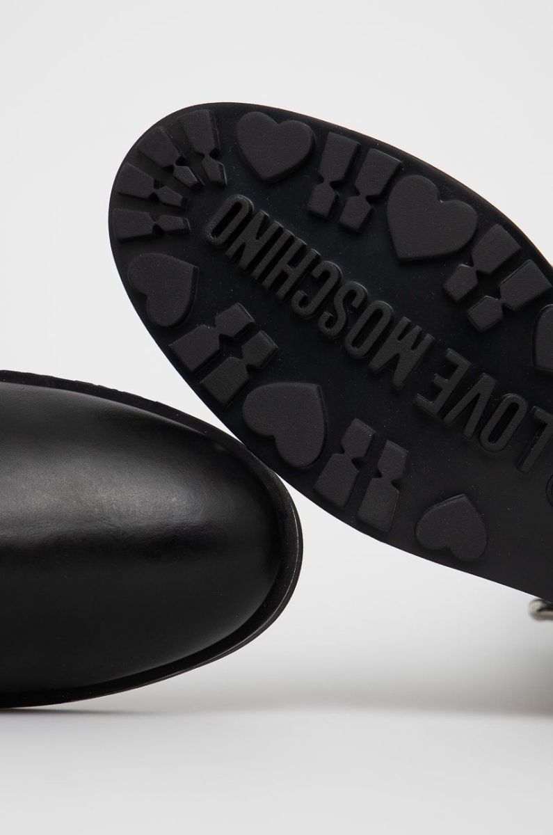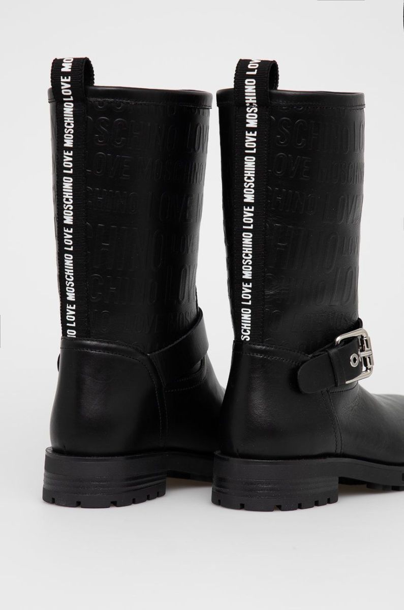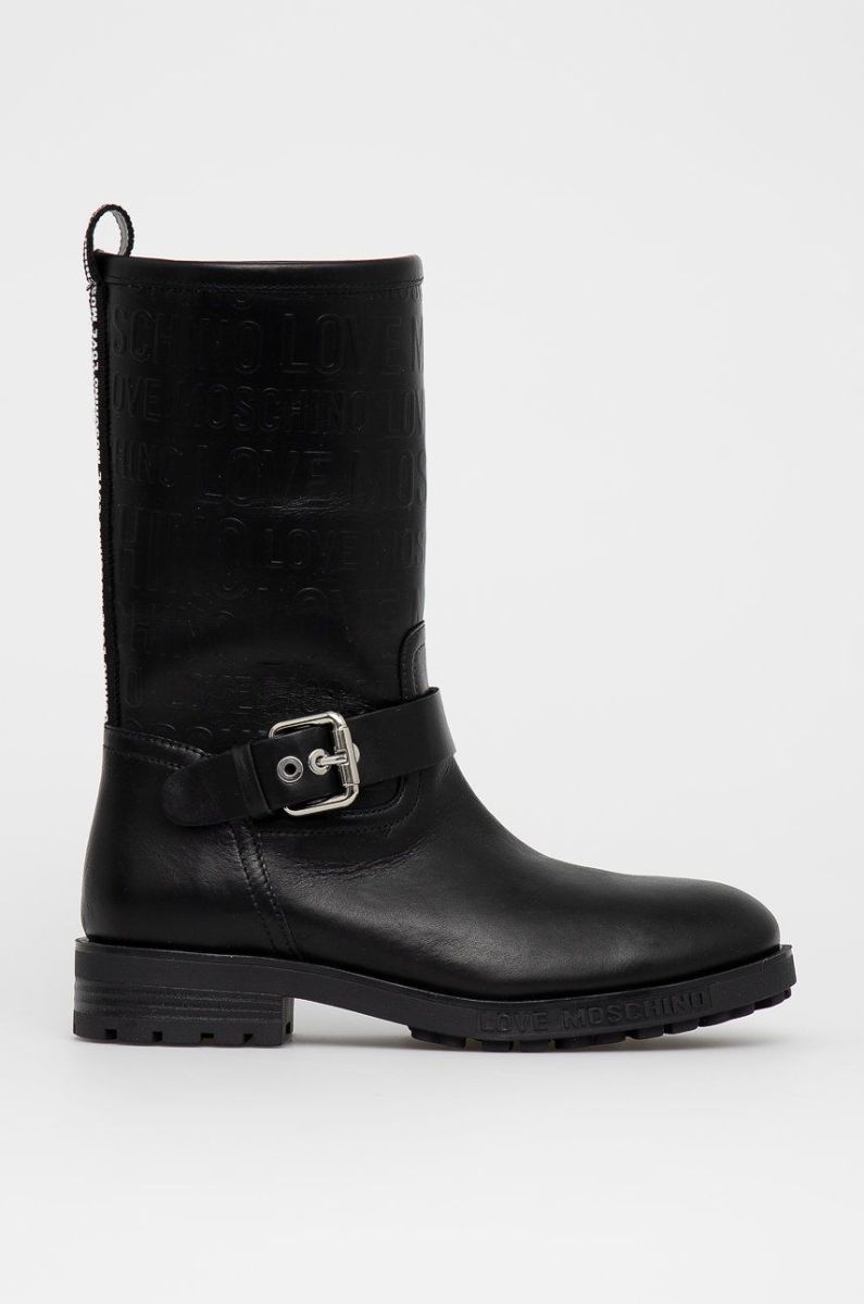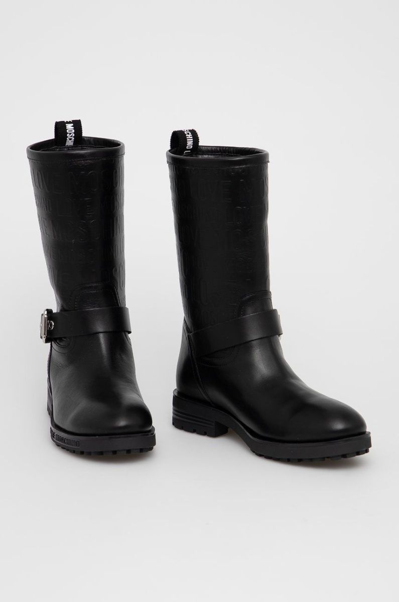 Шкіряні чоботи Love Moschino жіночі колір чорний на плоскому ходу
