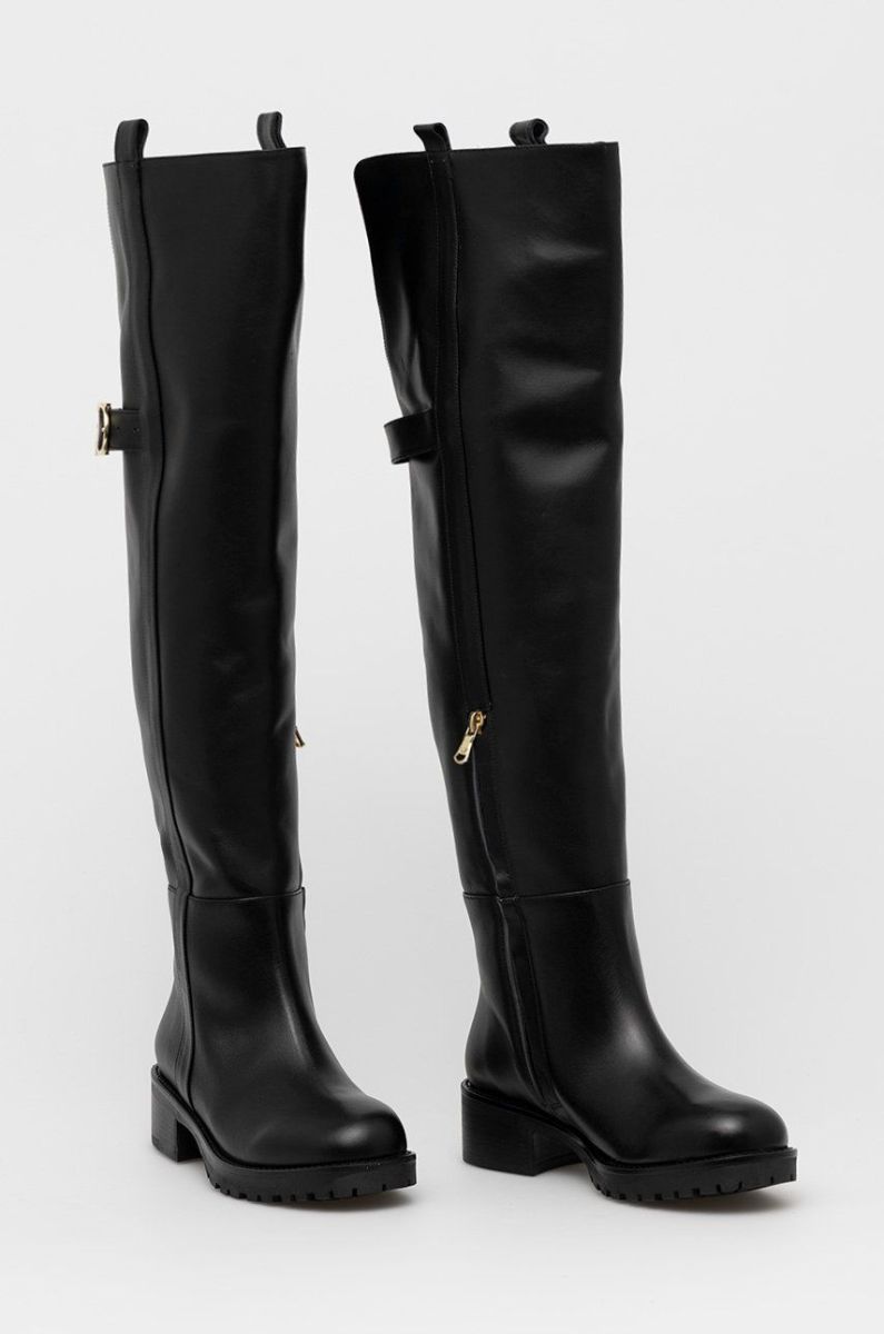 Шкіряні чоботи Patrizia Pepe жіночі колір чорний на платформі (2651097)