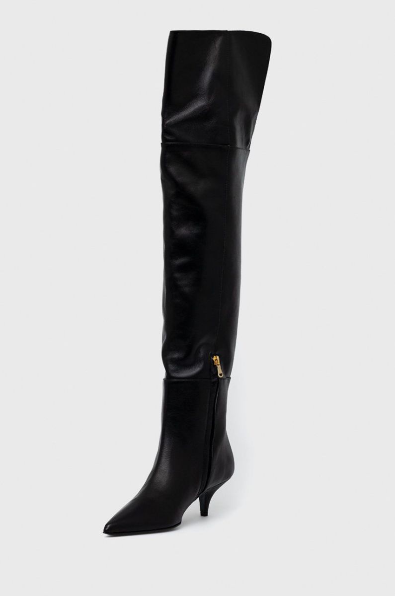 Шкіряні чоботи Patrizia Pepe жіночі колір чорний на шпильці