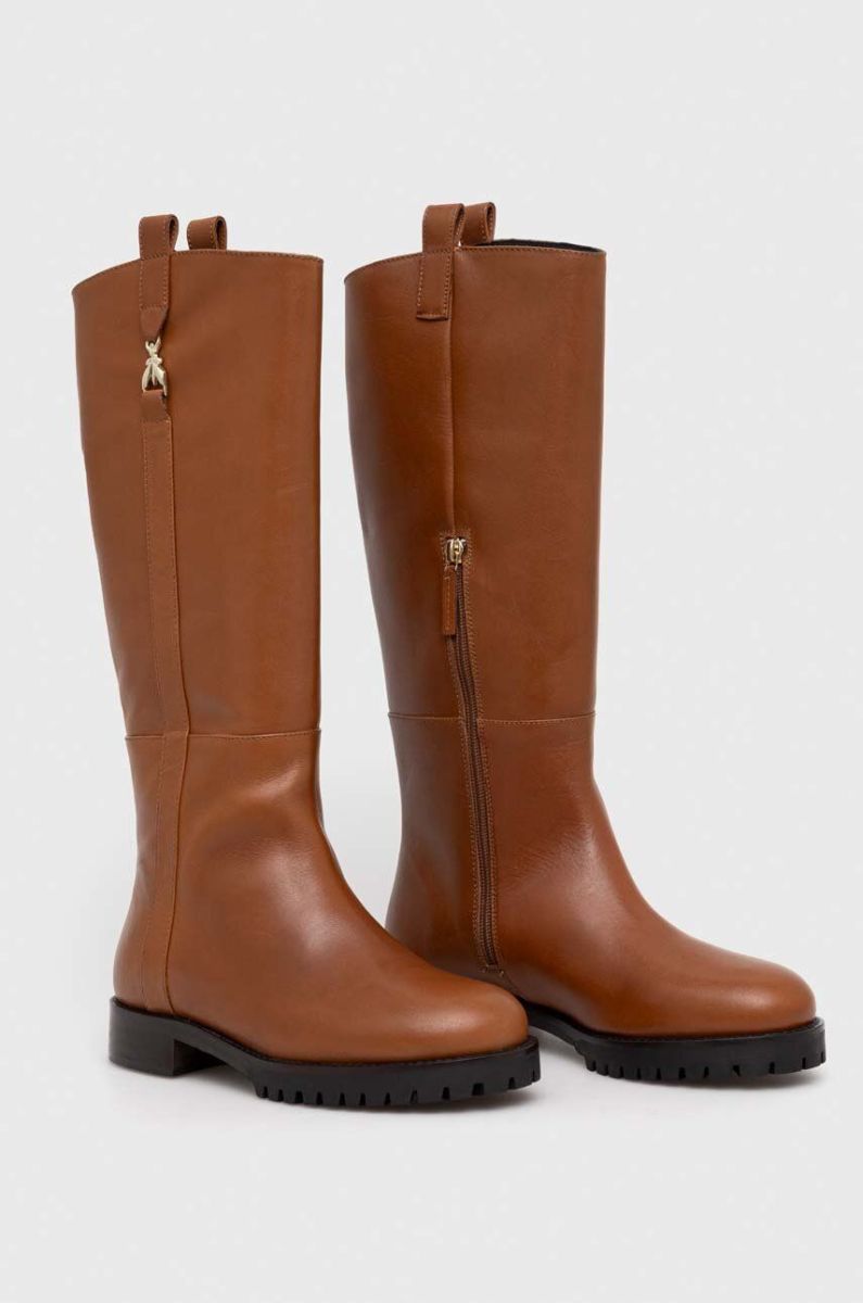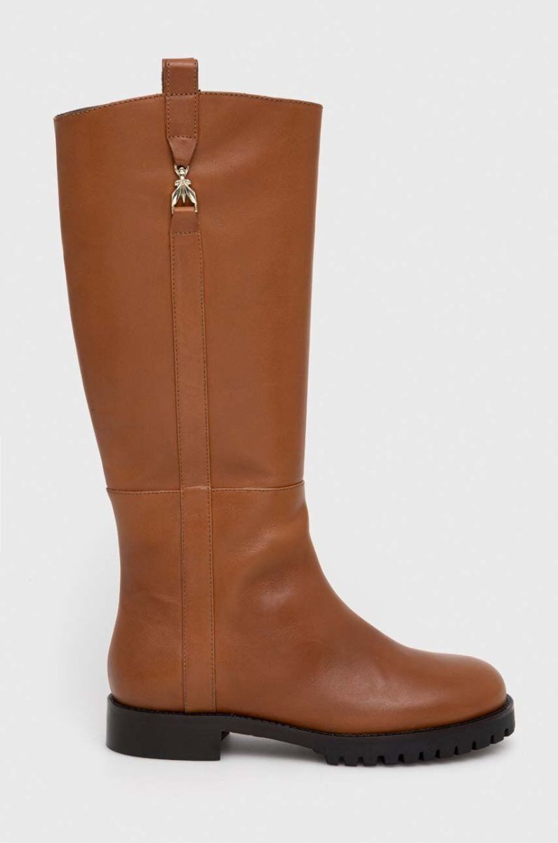 Шкіряні чоботи Patrizia Pepe жіночі колір коричневий на плоскому ходу 8Y0052 L078 B757