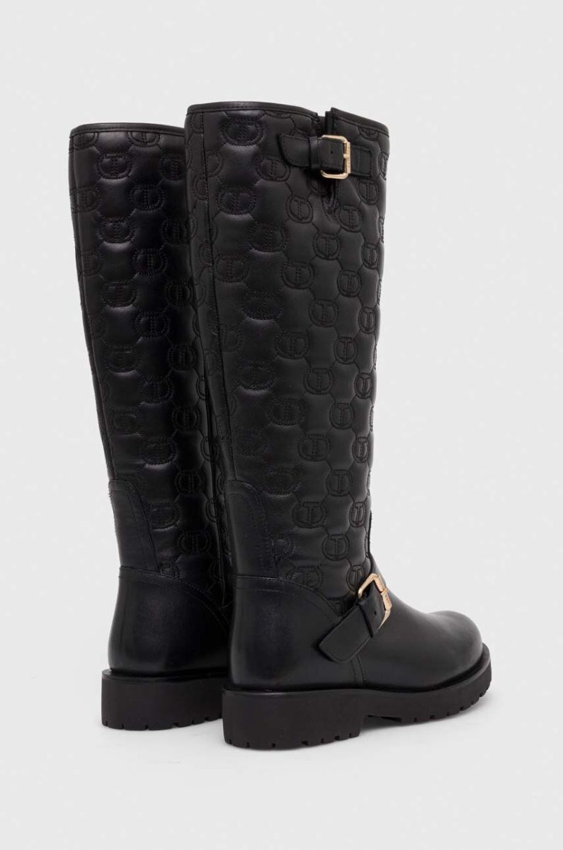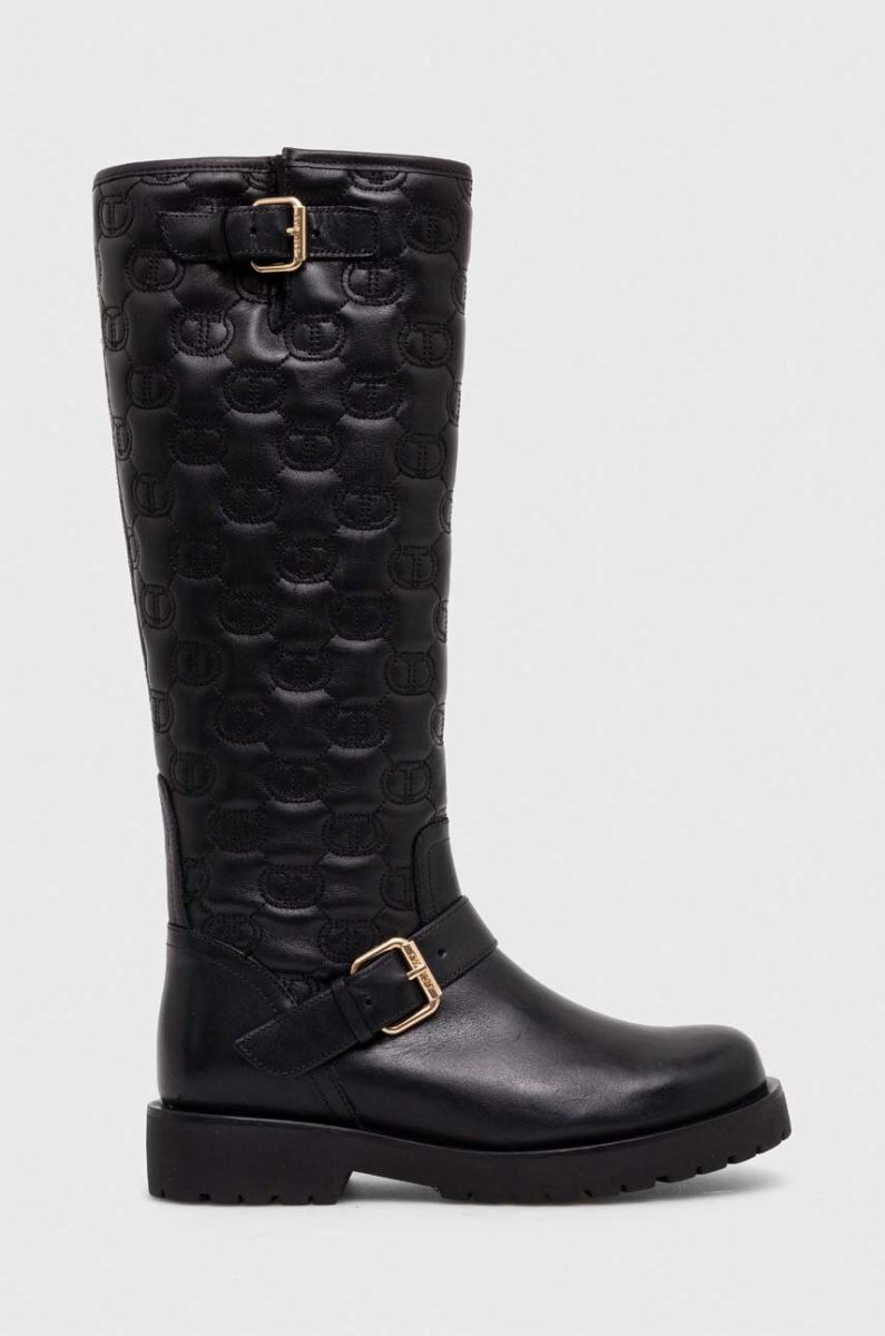 Шкіряні чоботи Twinset жіночі колір чорний на плоскому ходу 232TCT058