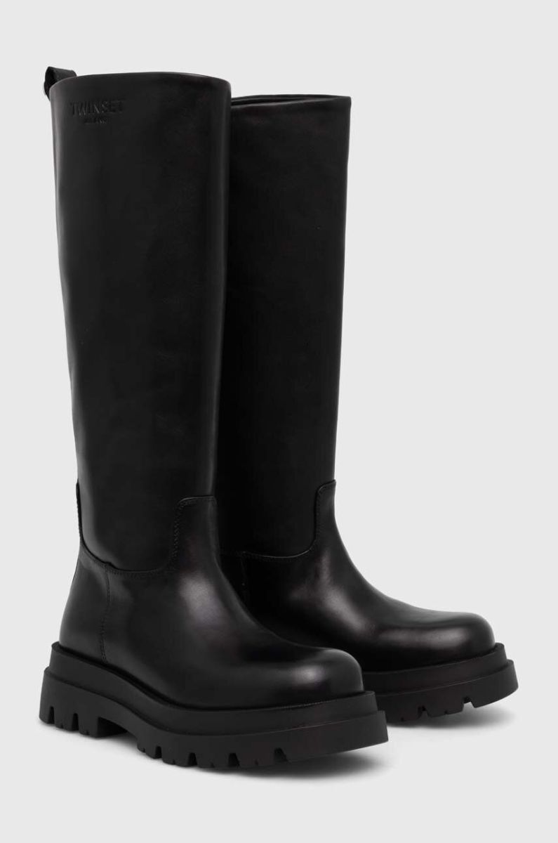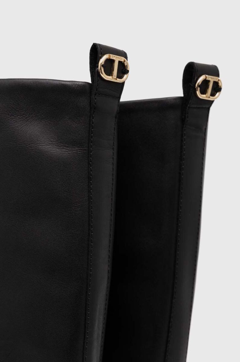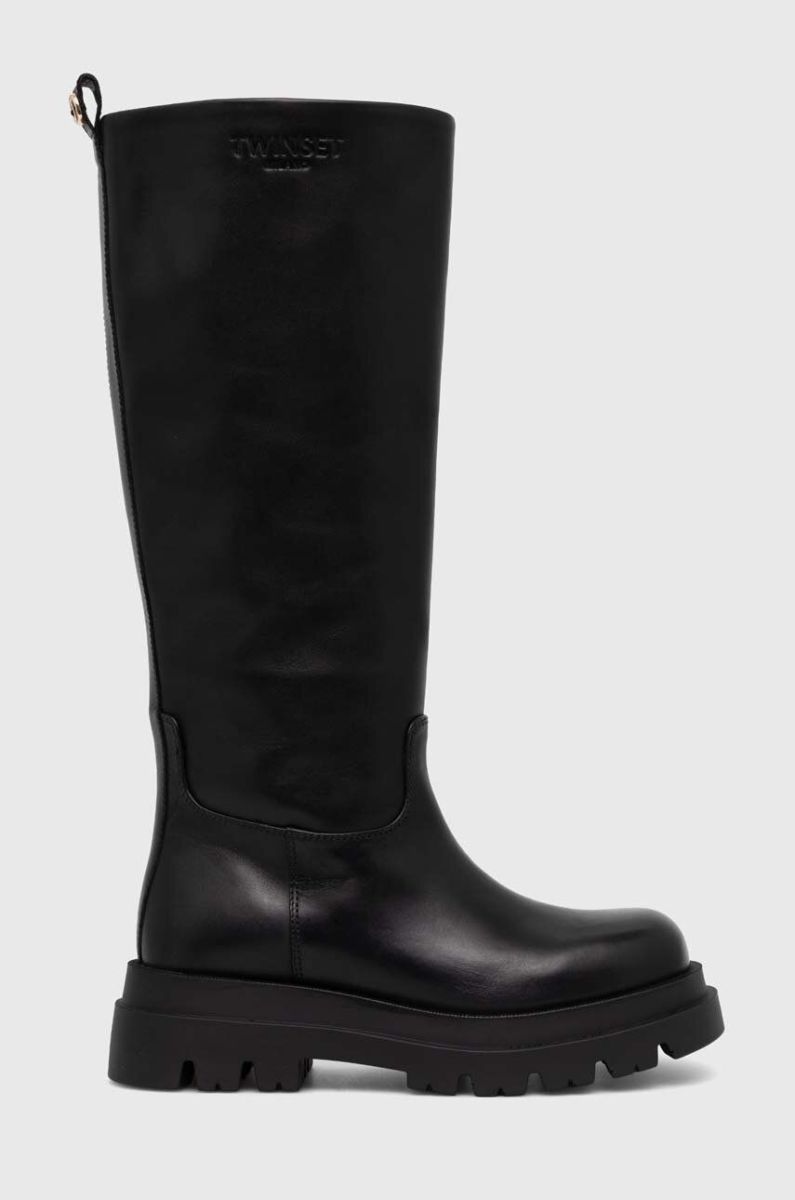 Шкіряні чоботи Twinset жіночі колір чорний на плоскому ходу 232TCT112