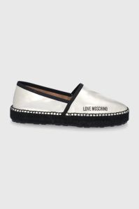 Шкіряні еспадрилі Love Moschino колір срібний на платформі
