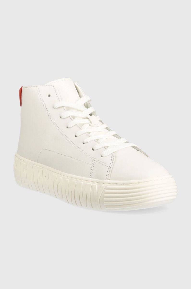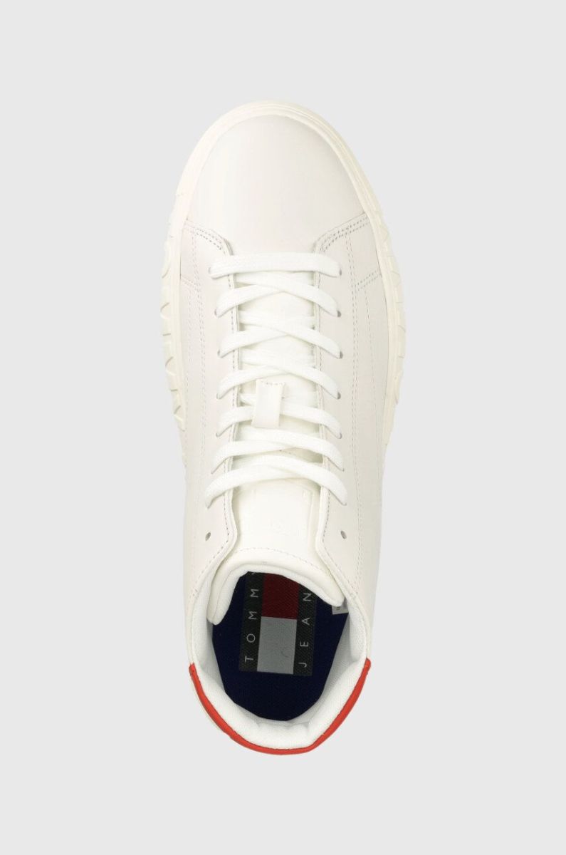Шкіряні кеди Tommy Jeans TJM OUTSOLE MID CUT чоловічі колір білий EM0EM01218
