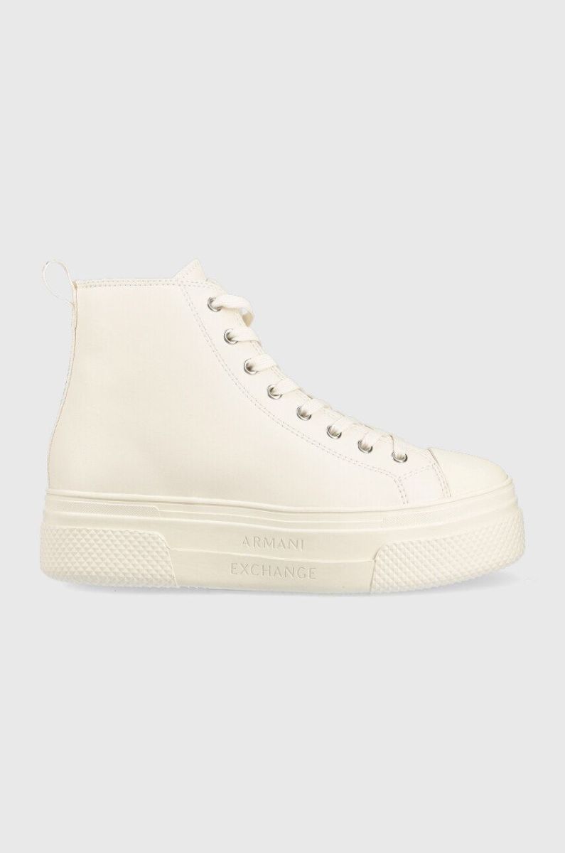 Шкіряні кросівки Armani Exchange жіночі колір бежевий