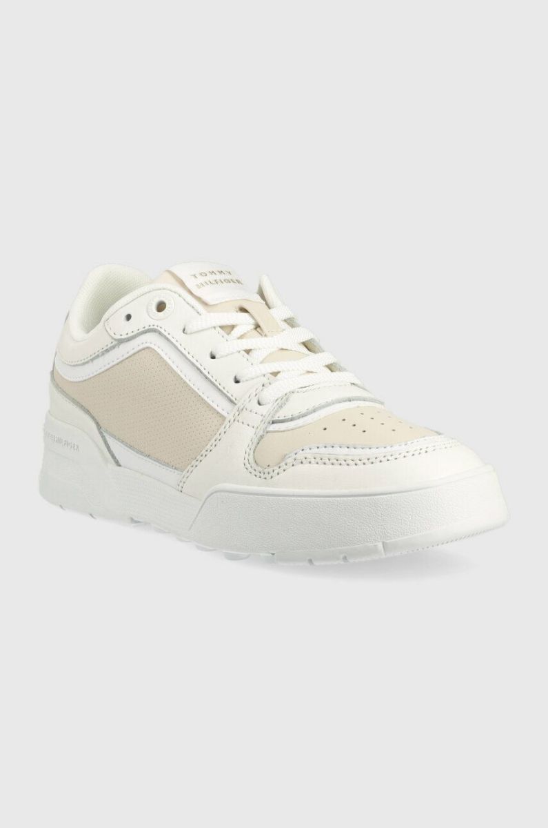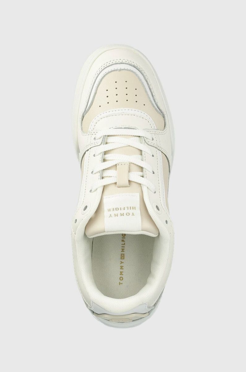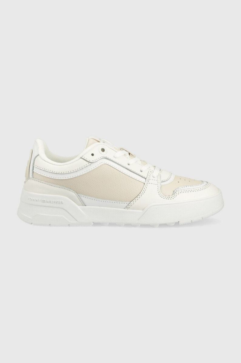 Шкіряні кросівки Tommy Hilfiger LOW TH BASKET SNEAKER колір бежевий