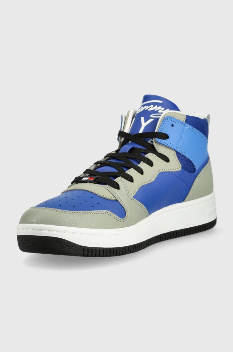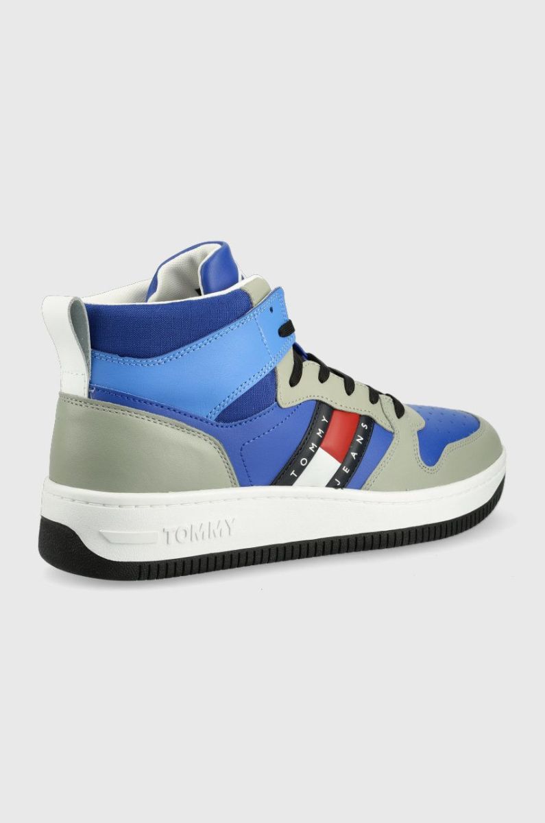 Шкіряні кросівки Tommy Jeans Mid Pop Basket колір блакитний