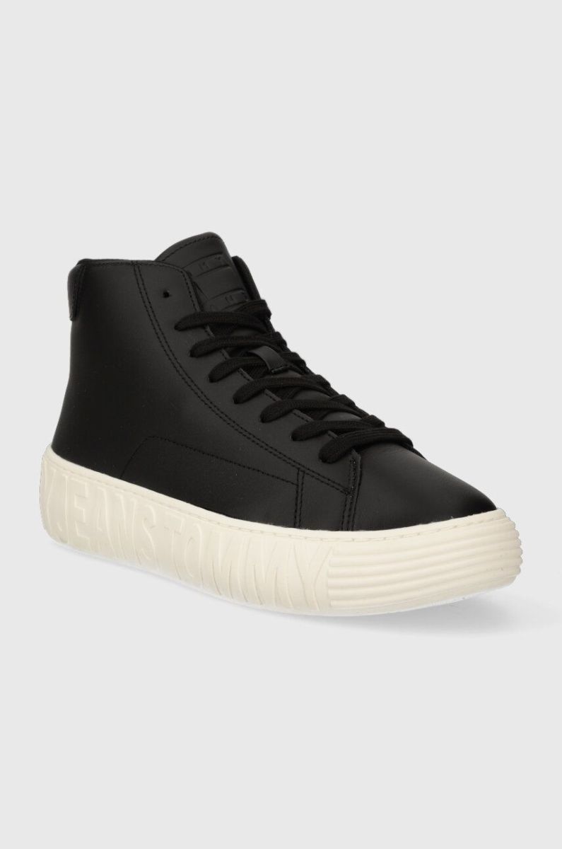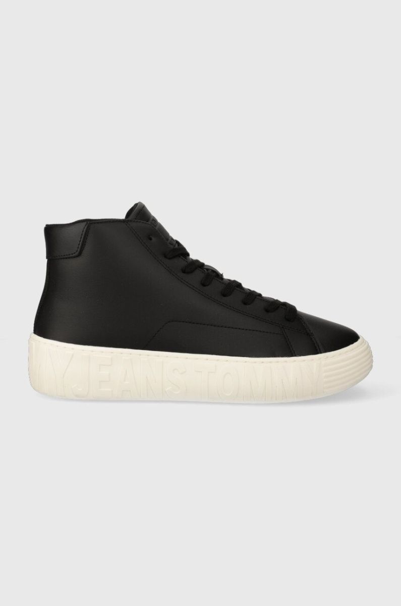 Шкіряні кросівки Tommy Jeans TJM LEATHER OUTSOLE MID колір чорний EM0EM01330