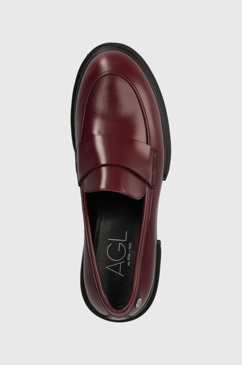 Шкіряні мокасини AGL IDA жіночі колір бордовий на платформі D756022PHSIRIO0313