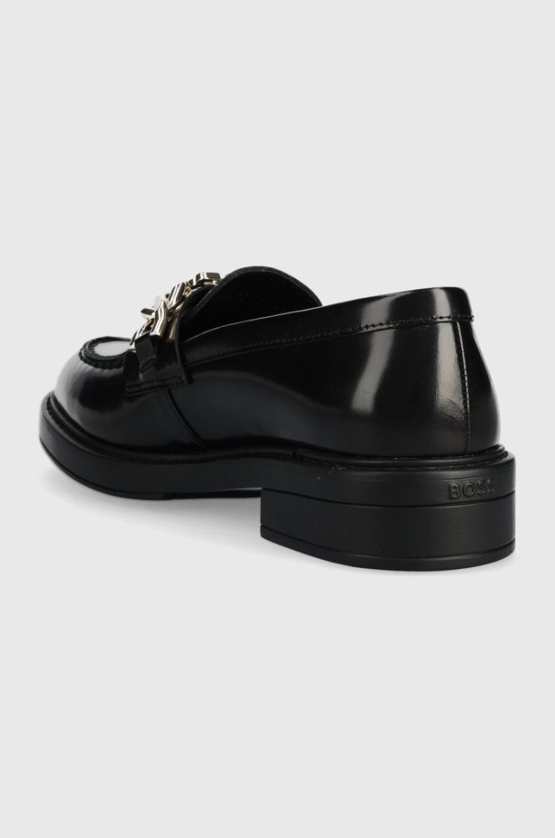 Шкіряні мокасини BOSS Vanity жіночі колір чорний на плоскому ходу 50504575