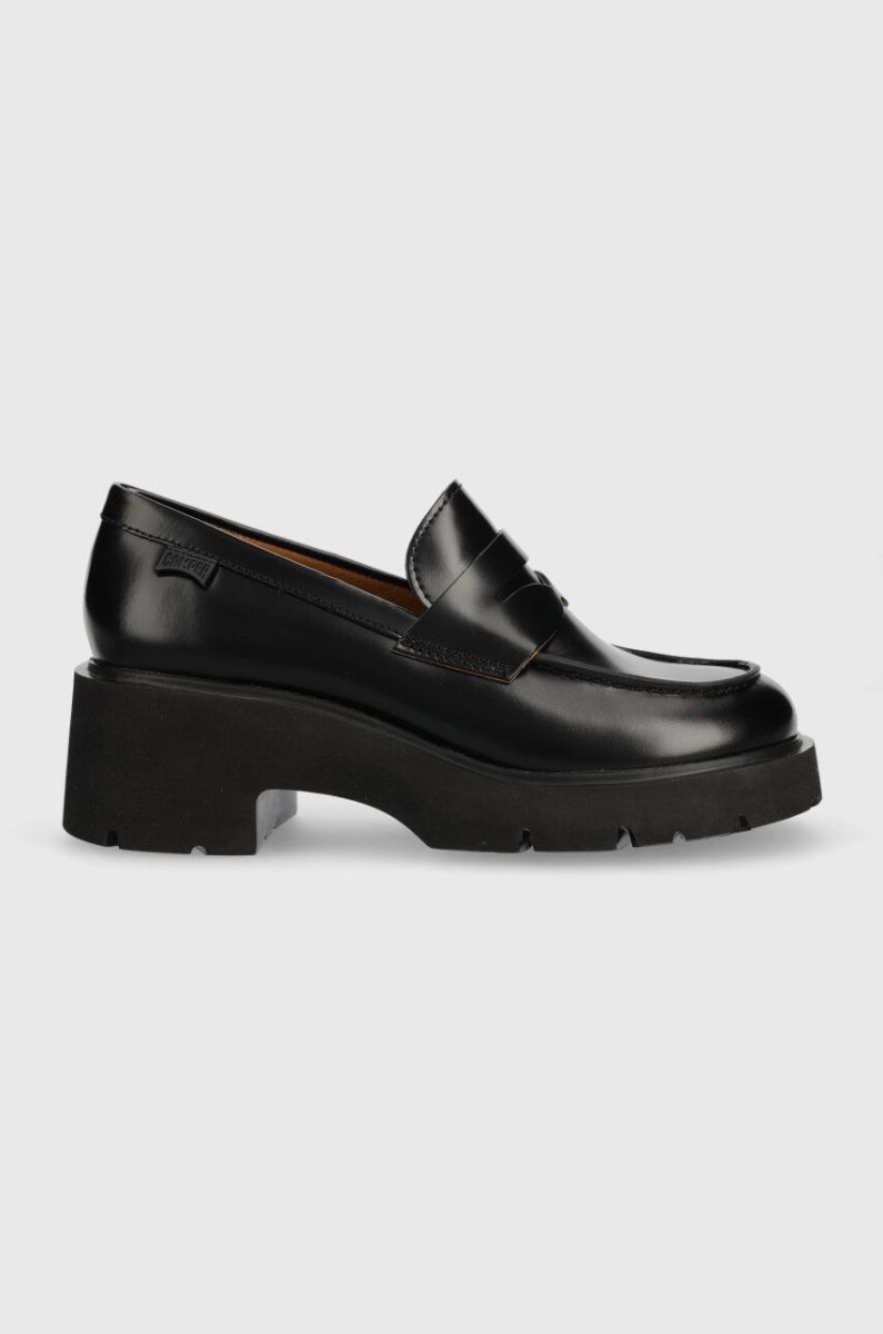 Шкіряні мокасини Camper Milah жіночі колір чорний на платформі K201425.002