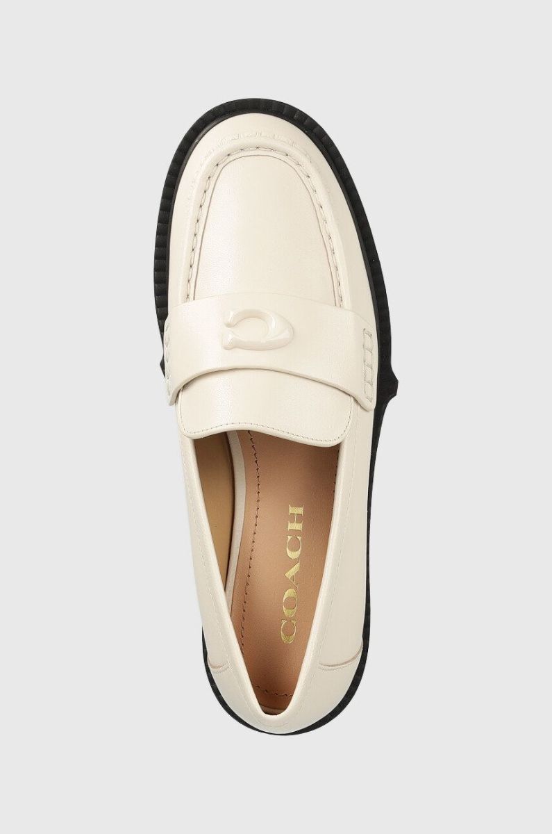 Шкіряні мокасини Coach Cb990 Leah Loafer жіночі колір бежевий на платформі CB990