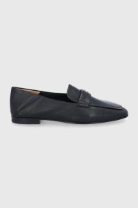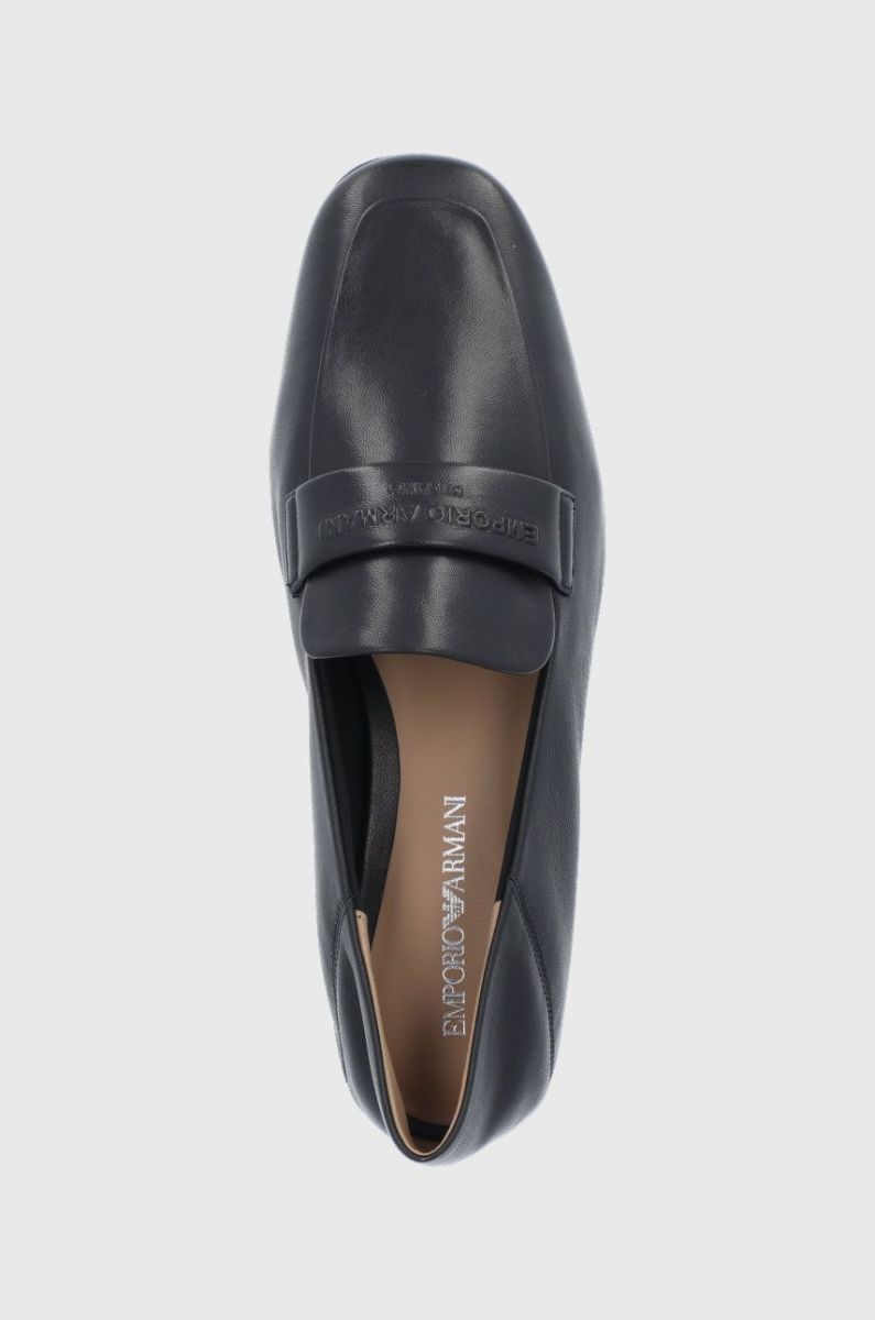 Шкіряні мокасини Emporio Armani жіночі колір чорний на плоскому ходу