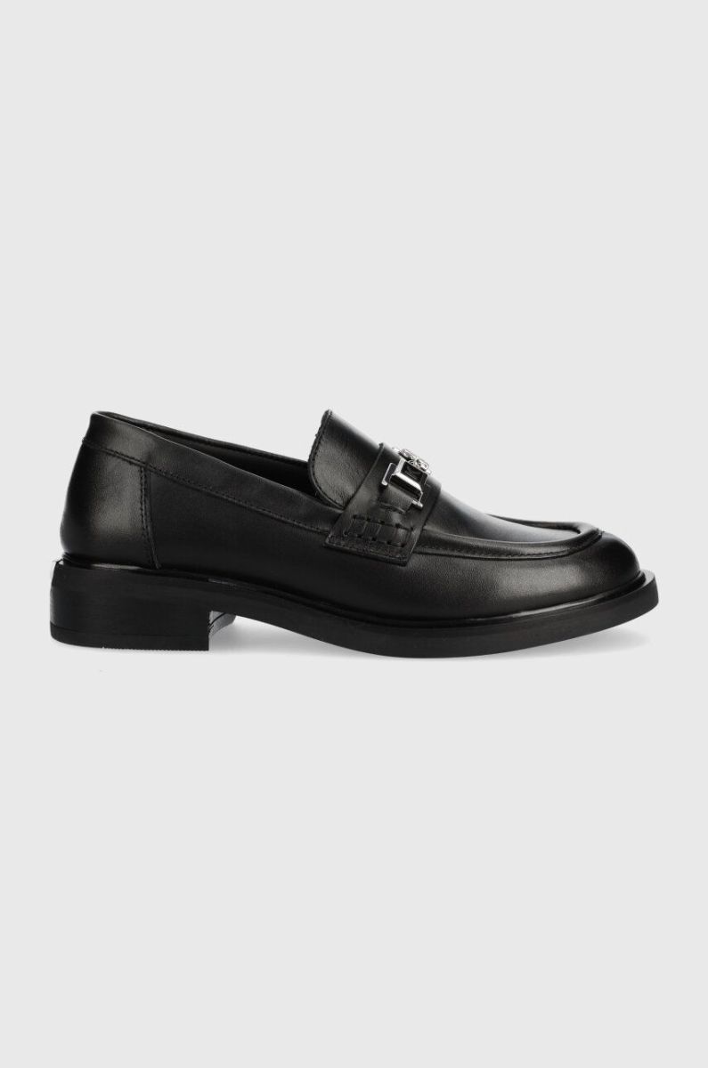 Шкіряні мокасини Karl Lagerfeld PAYTON жіночі колір чорний на плоскому ходу KL41420
