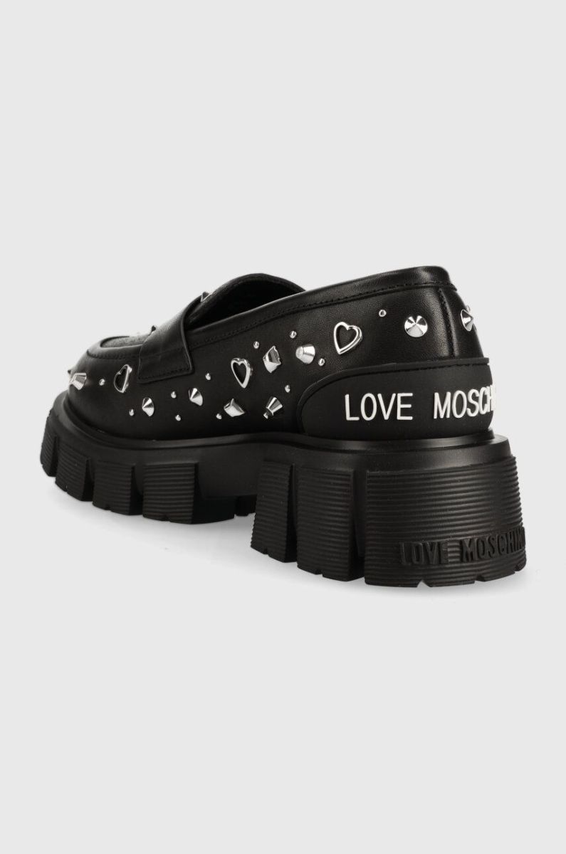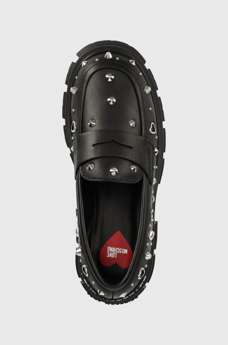 Шкіряні мокасини Love Moschino жіночі колір чорний на платформі JA10035G1HIA0000