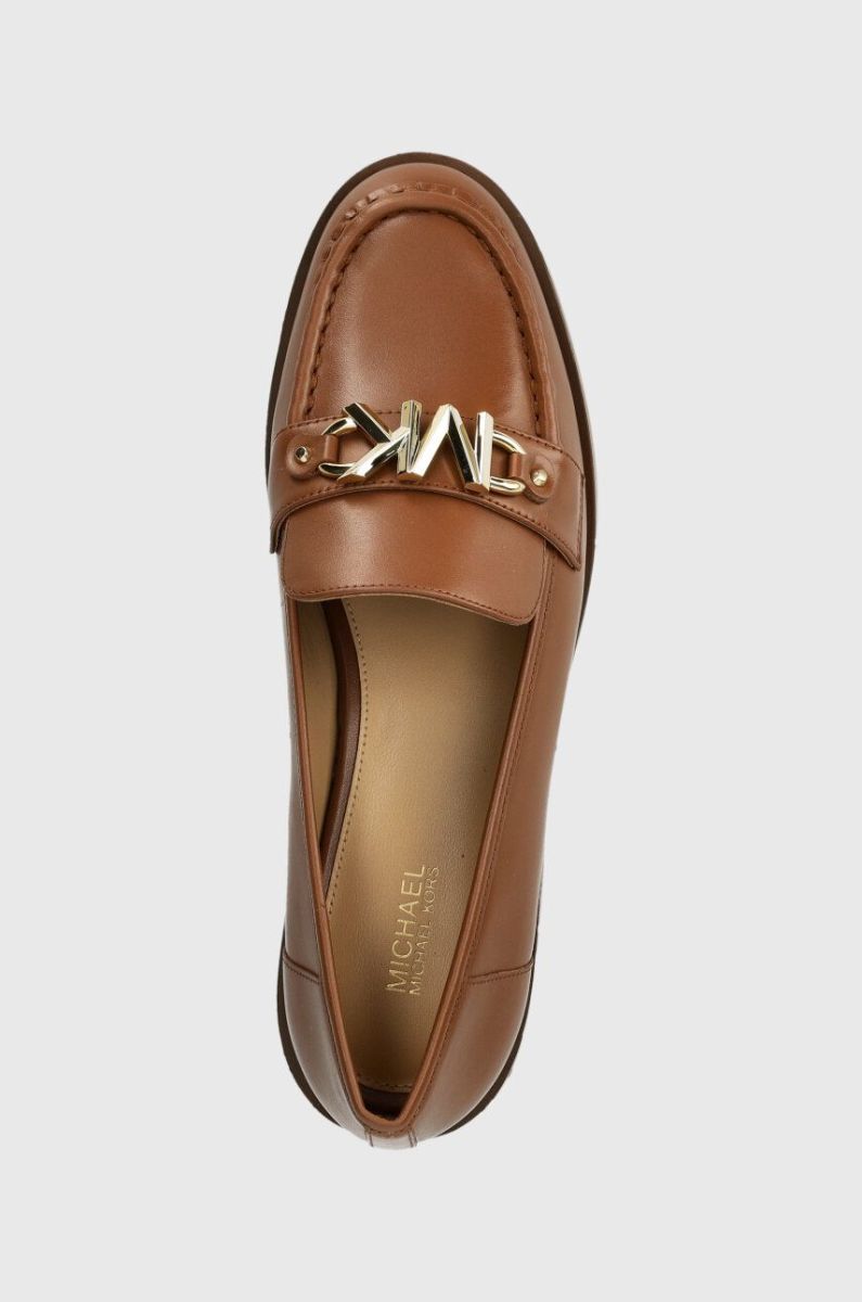 Шкіряні мокасини MICHAEL Michael Kors Tiegan жіночі колір коричневий на плоскому ходу 40F3TGFP1L