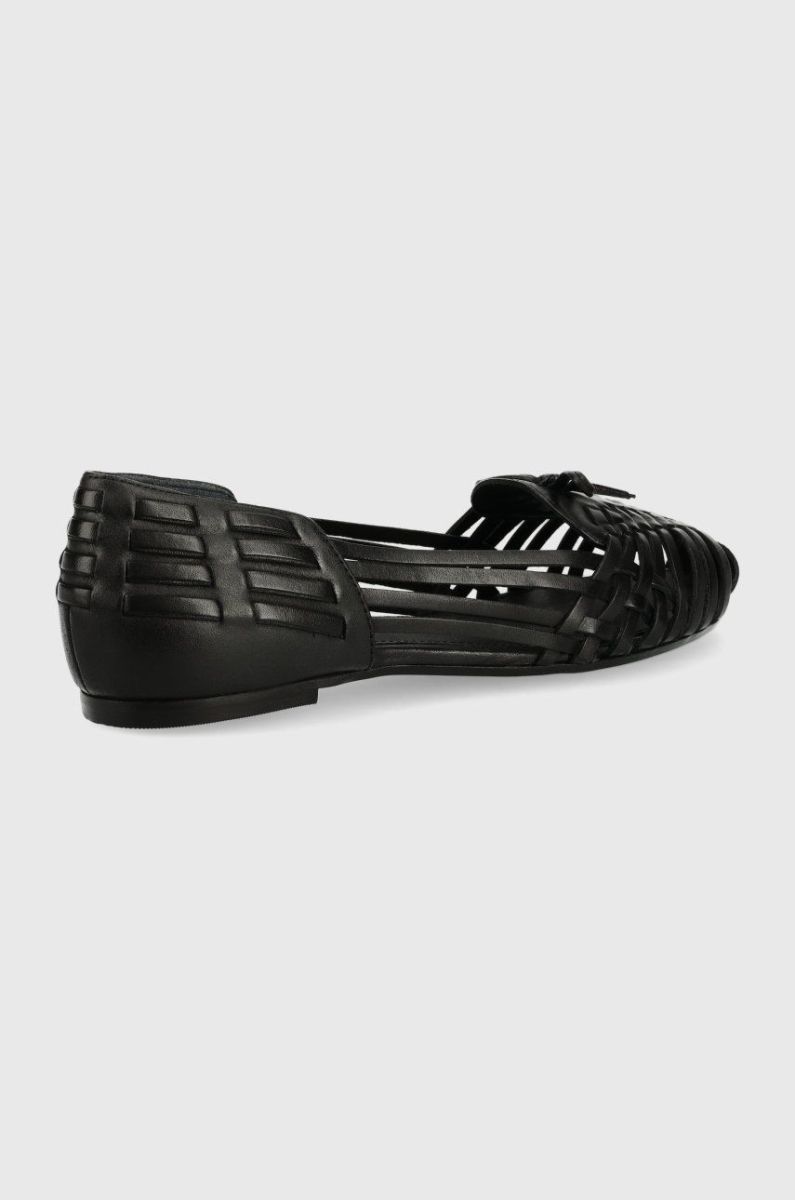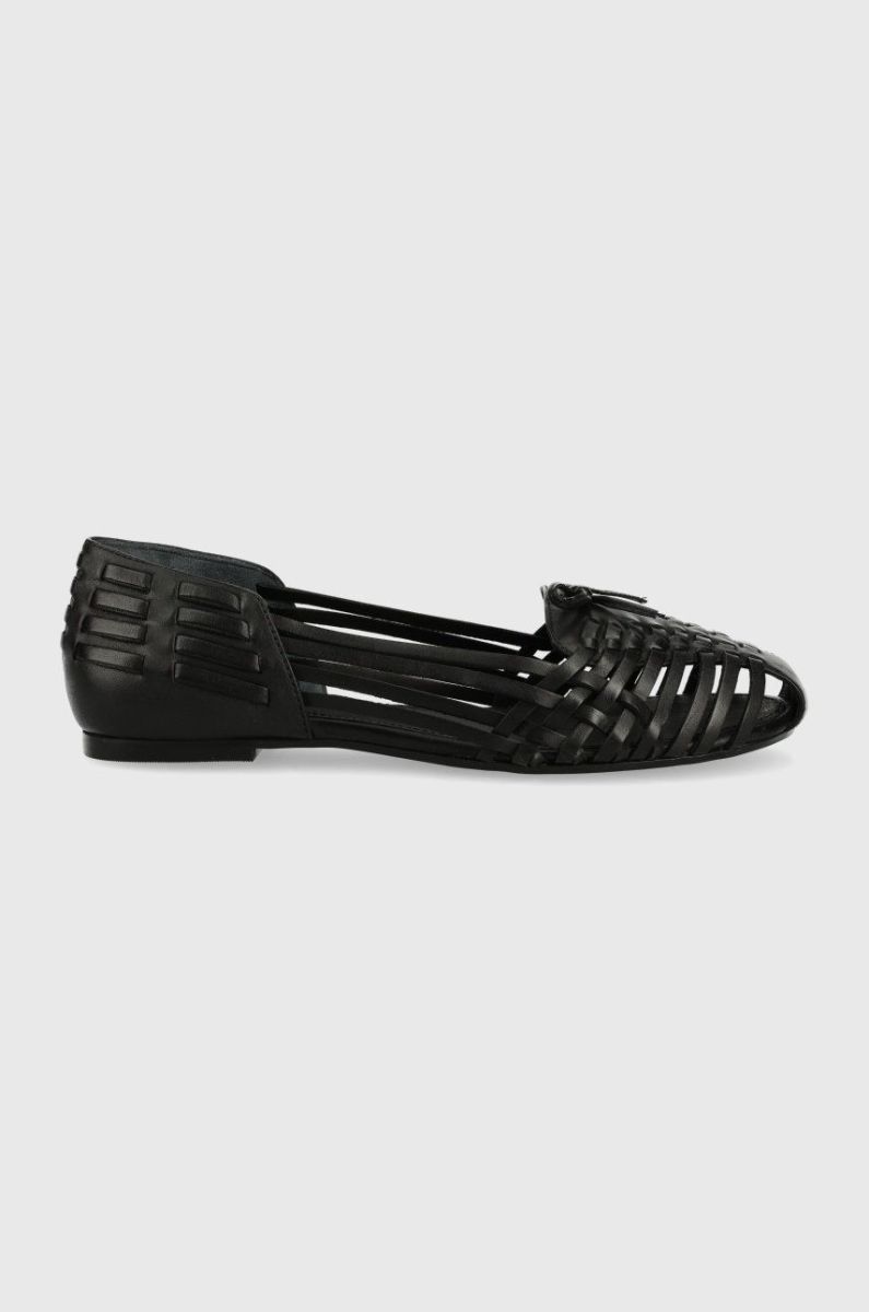Шкіряні мокасини Sisley жіночі колір чорний на плоскому ходу