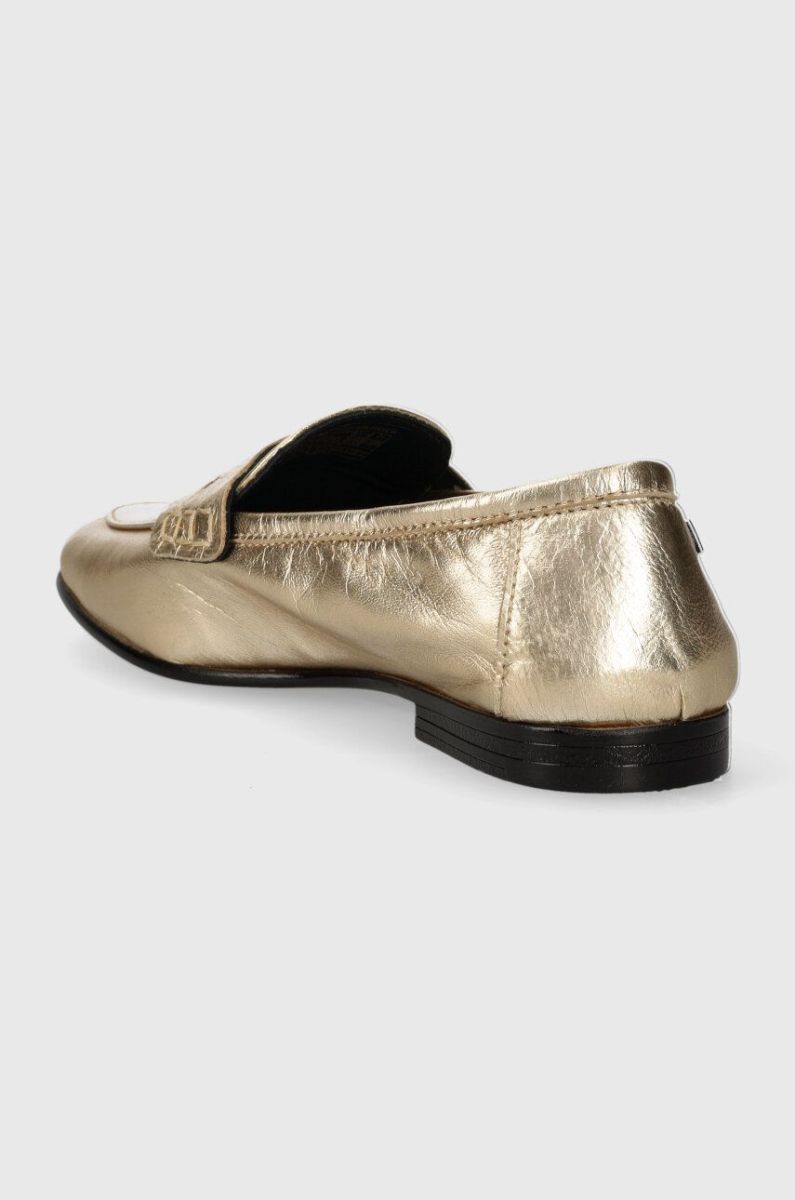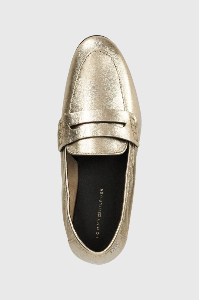 Шкіряні мокасини Tommy Hilfiger ESSENTIAL GOLDEN LOAFER жіночі колір золотий на плоскому ходу FW0FW07864