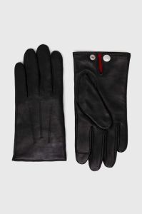 Шкіряні рукавички HUGO чоловічі колір чорний