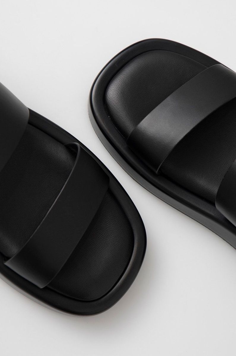 Шкіряні сандалі BOSS жіночі колір чорний на платформі