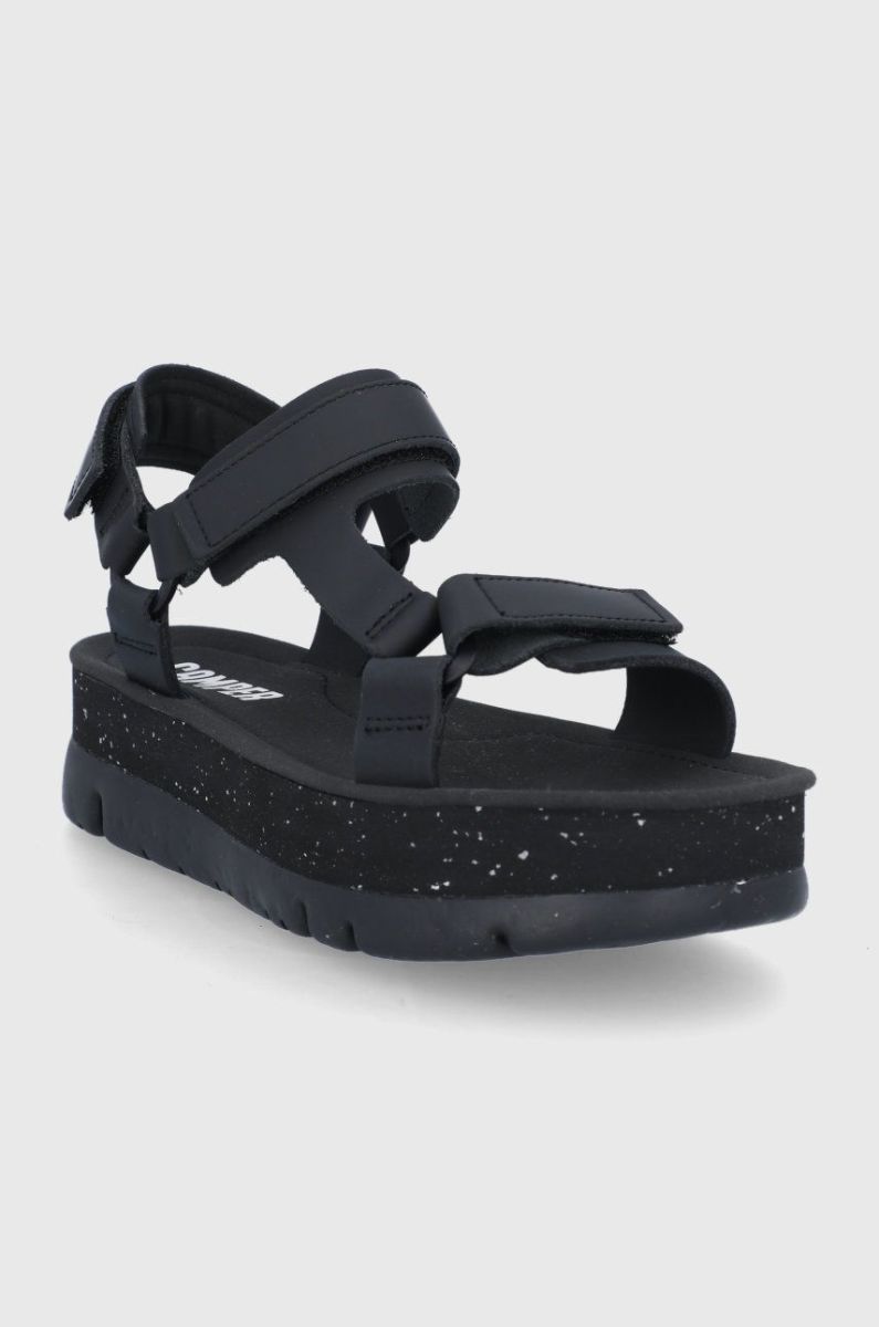 Шкіряні сандалі Camper Oruga Up жіночі колір чорний на платформі