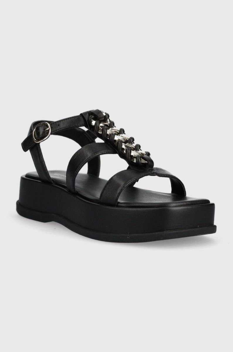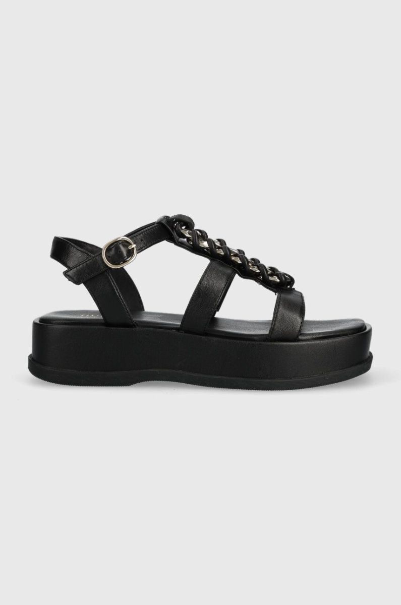 Шкіряні сандалі Guess VADIKA жіночі колір чорний на платформі FL6VAD LEA03