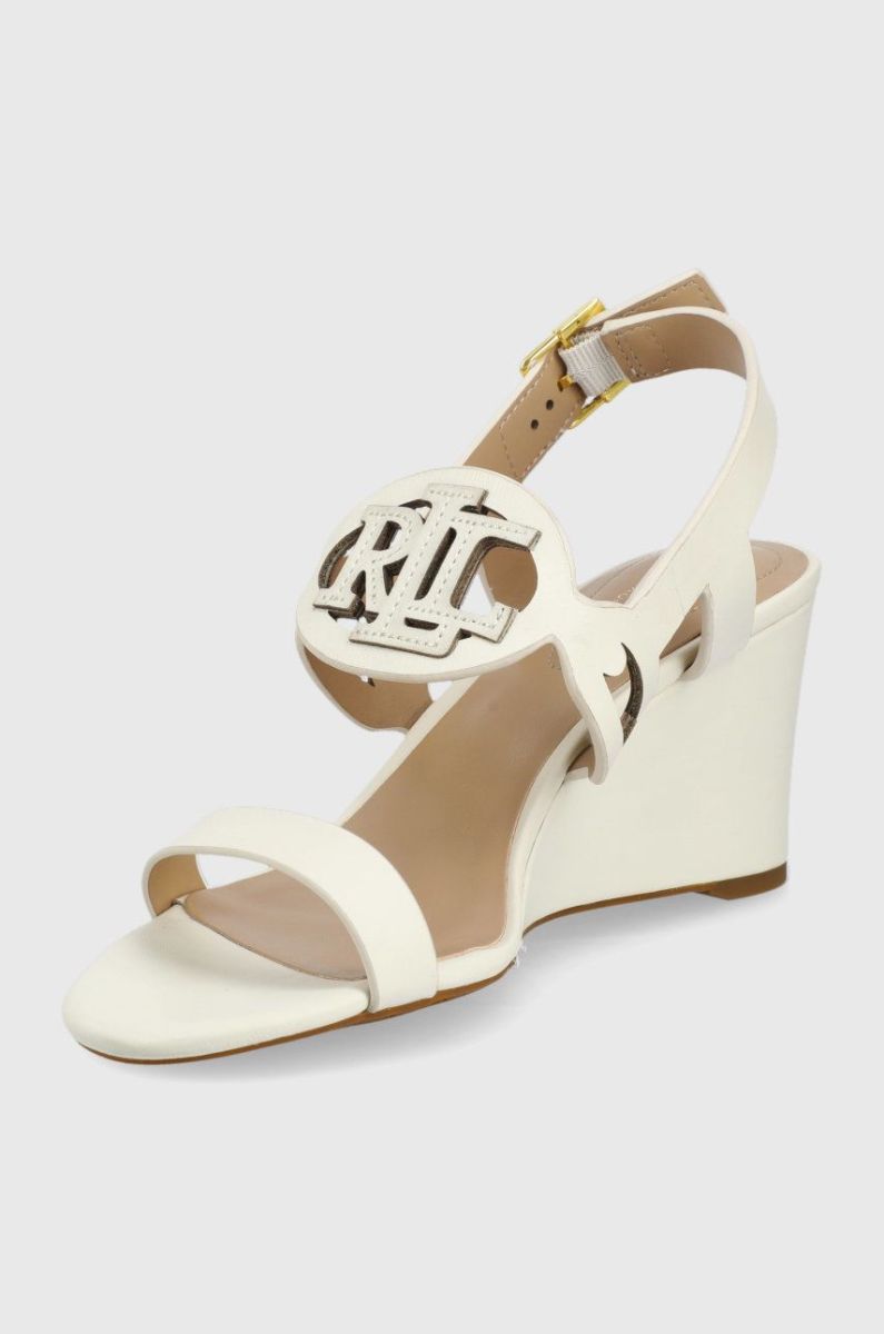 Шкіряні сандалі Lauren Ralph Lauren Amilea жіночі колір бежевий на танкетці