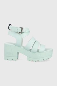 Шкіряні сандалі Tommy Jeans жіночі колір бірюзовий каблук блок