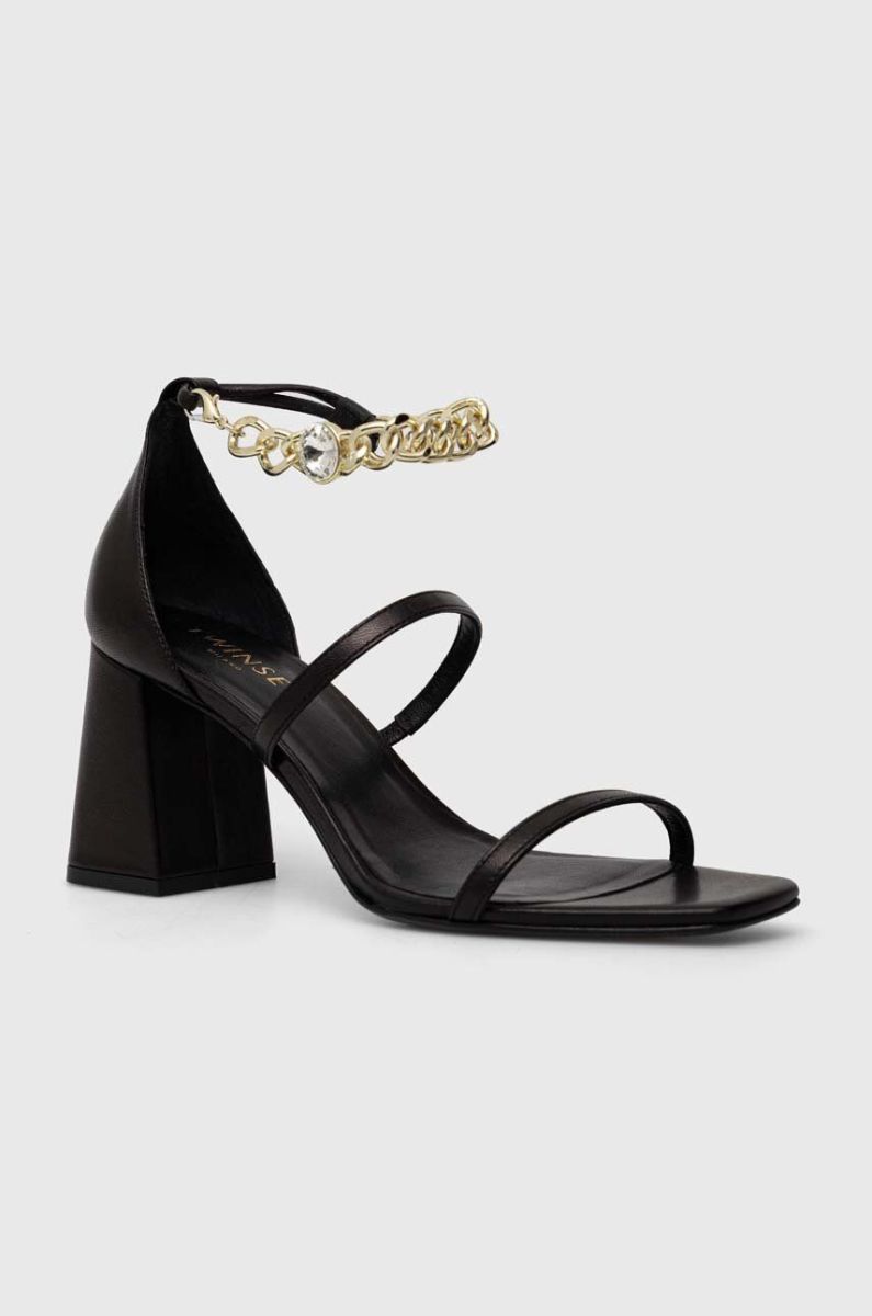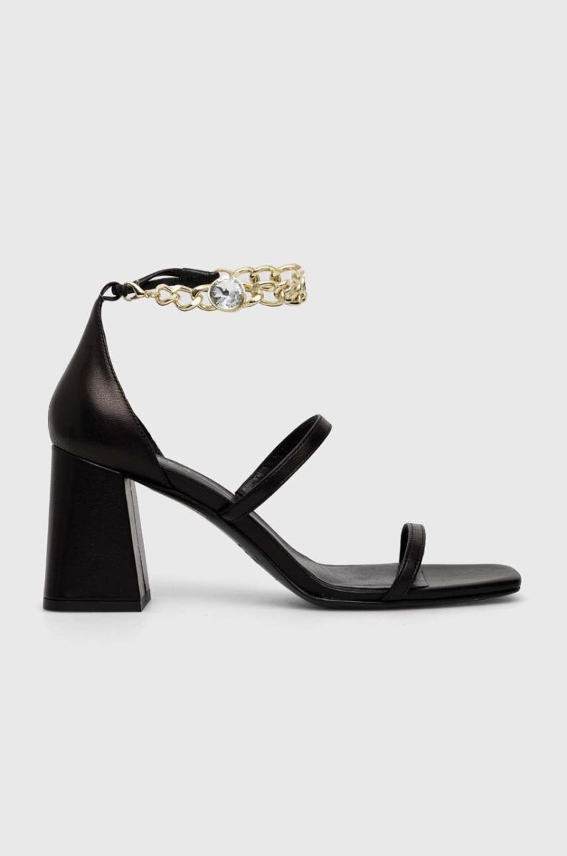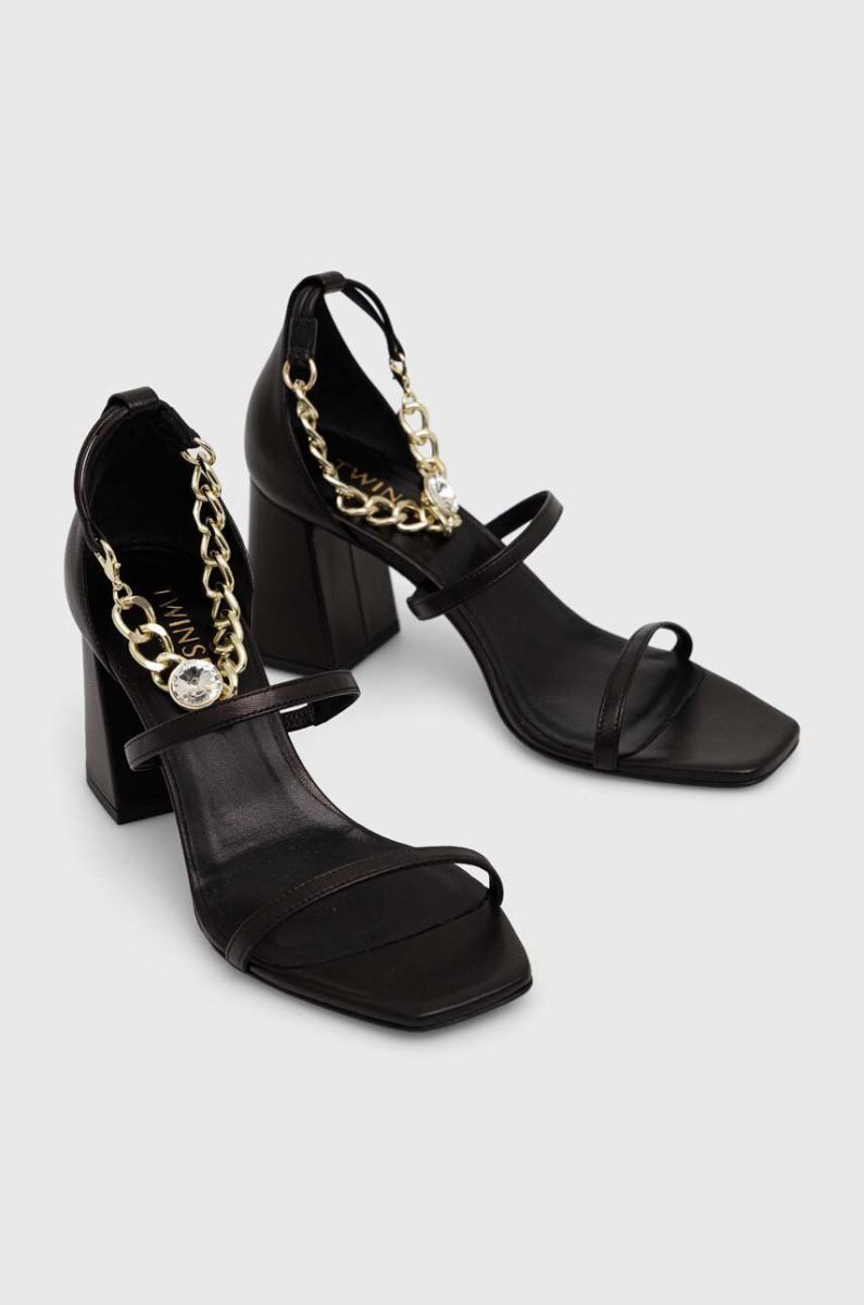 Шкіряні сандалі Twinset жіночі колір чорний каблук блок 231TCT160