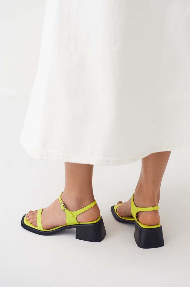 Шкіряні сандалі Vagabond Shoemakers INES жіночі колір зелений каблук блок