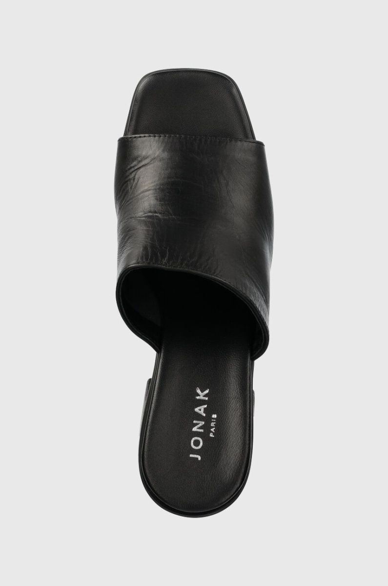 Шкіряні шльопанці Jonak PALMIER CUIR жіночі колір чорний каблук блок 1800024