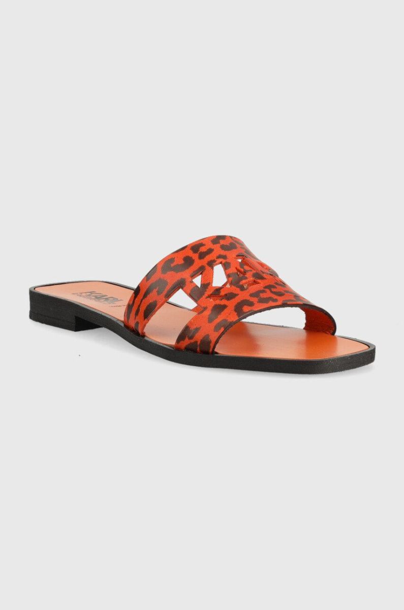 Шкіряні шльопанці Karl Lagerfeld Skoot II жіночі колір помаранчевий KL80404