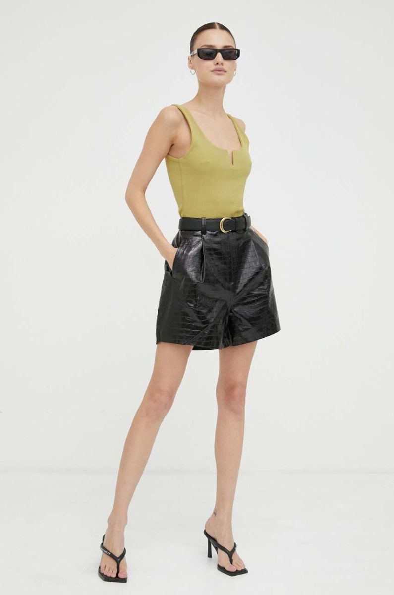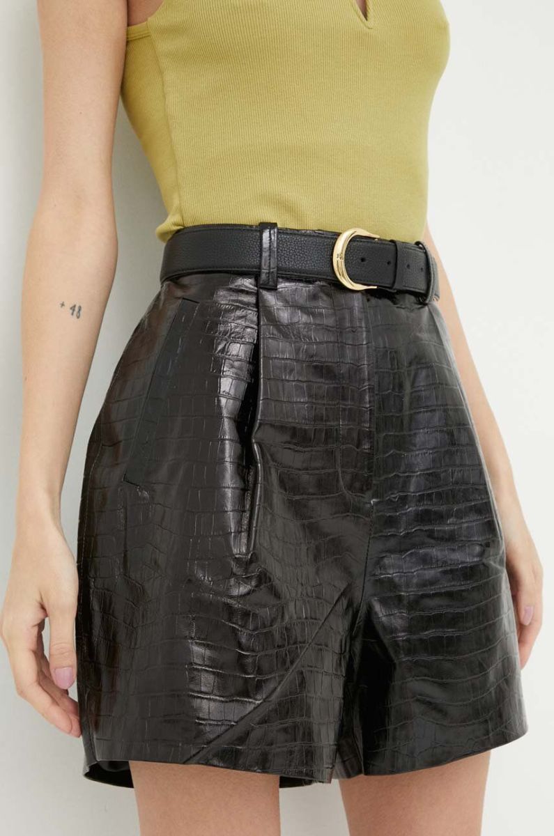Шкіряні шорти 2NDDAY жіночі колір чорний однотонні висока посадка