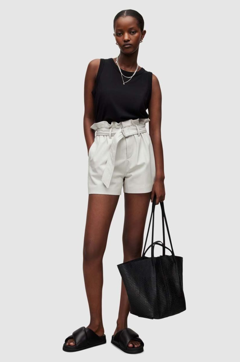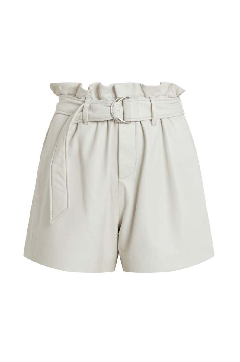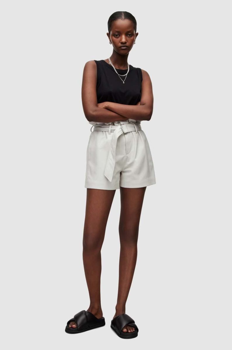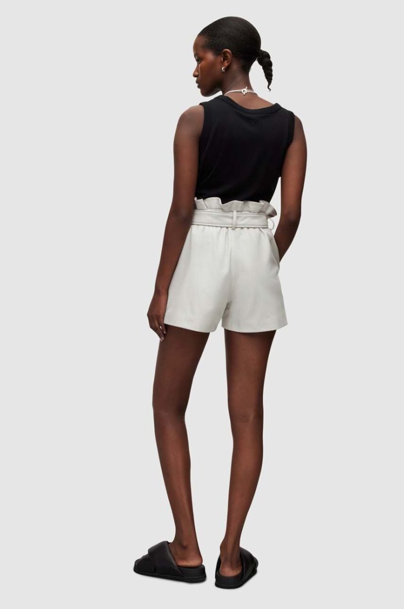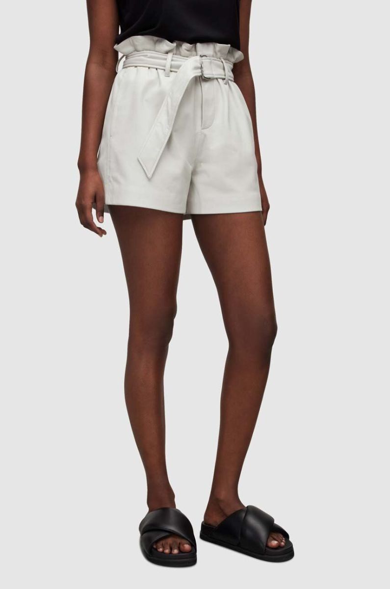 Шкіряні шорти AllSaints жіночі колір білий однотонні висока посадка