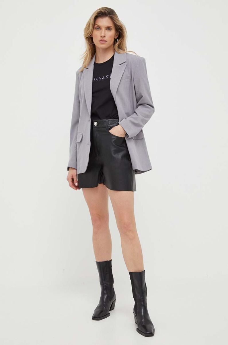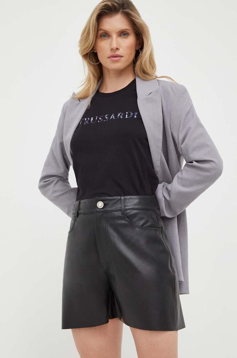 Шкіряні шорти Custommade Nava жіночі колір чорний однотонні висока посадка