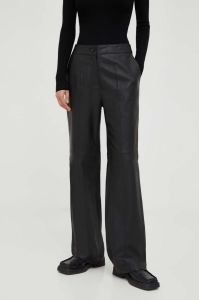 Шкіряні штани Bruuns Bazaar жіночі колір чорний широке висока посадка